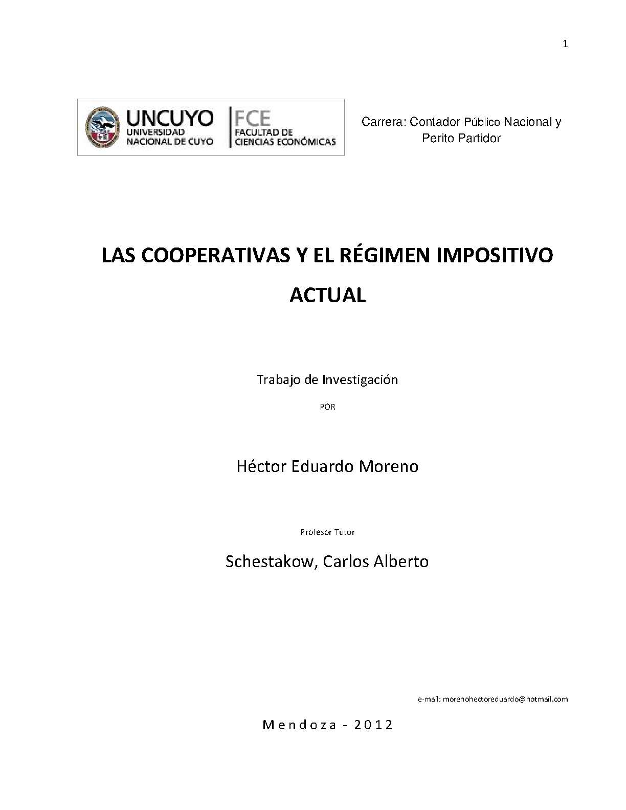 Moreno, Héctor Eduardo. (2012). Las cooperativas y el régimen impositivo actual: (Trabajo final de grado). Mendoza, Universidad Nacional de Cuyo. Facultad de Ciencias Económicas.