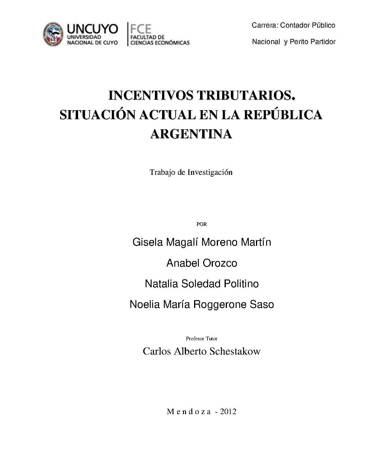 En el presente trabajo se pretende abordar la actual situación de los incentivos tributarios