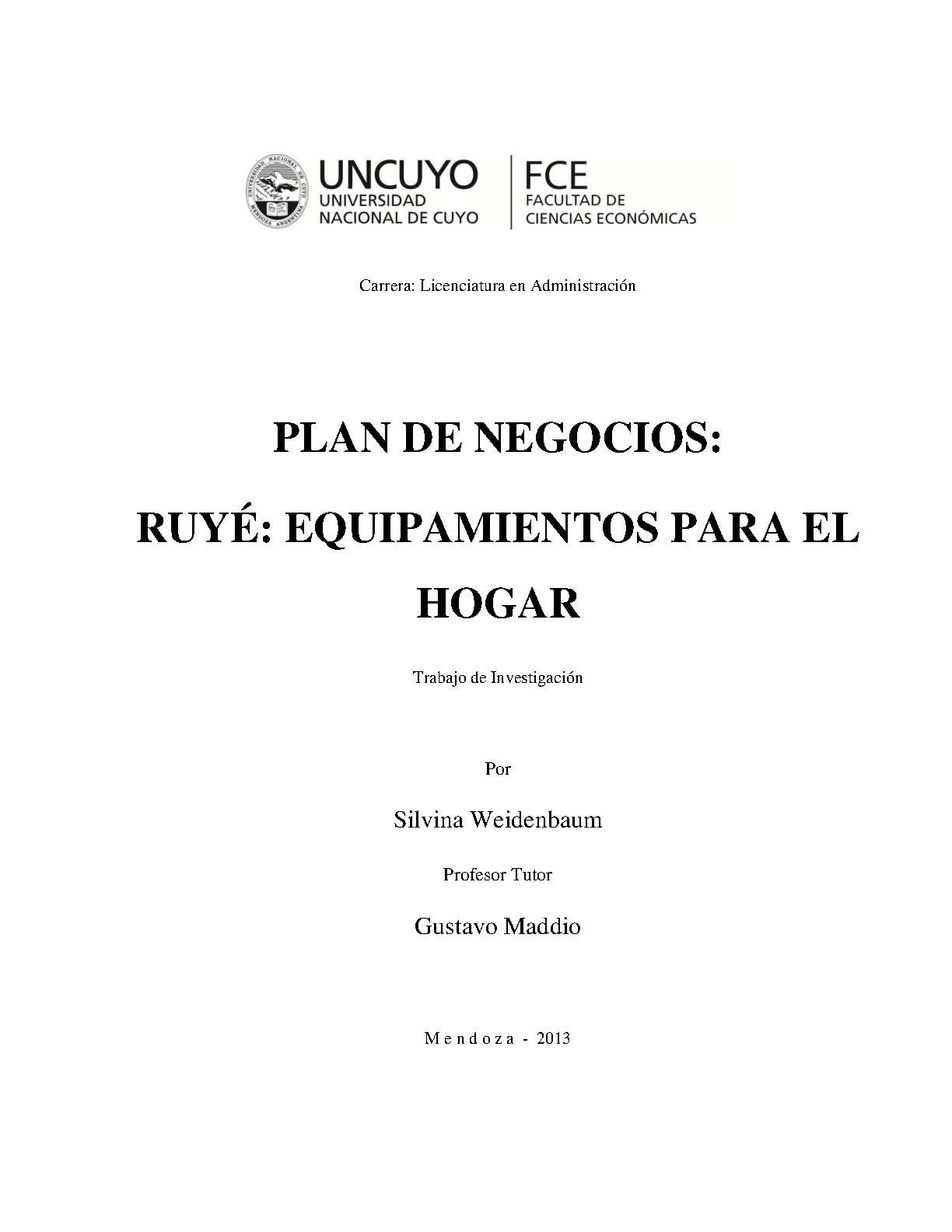 El presente trabajo de investigación tiene como finalidad el análisis de la pequeña empresa Ruyé: Equipamientos para el hogar, su entorno y mercado, tanto actual
