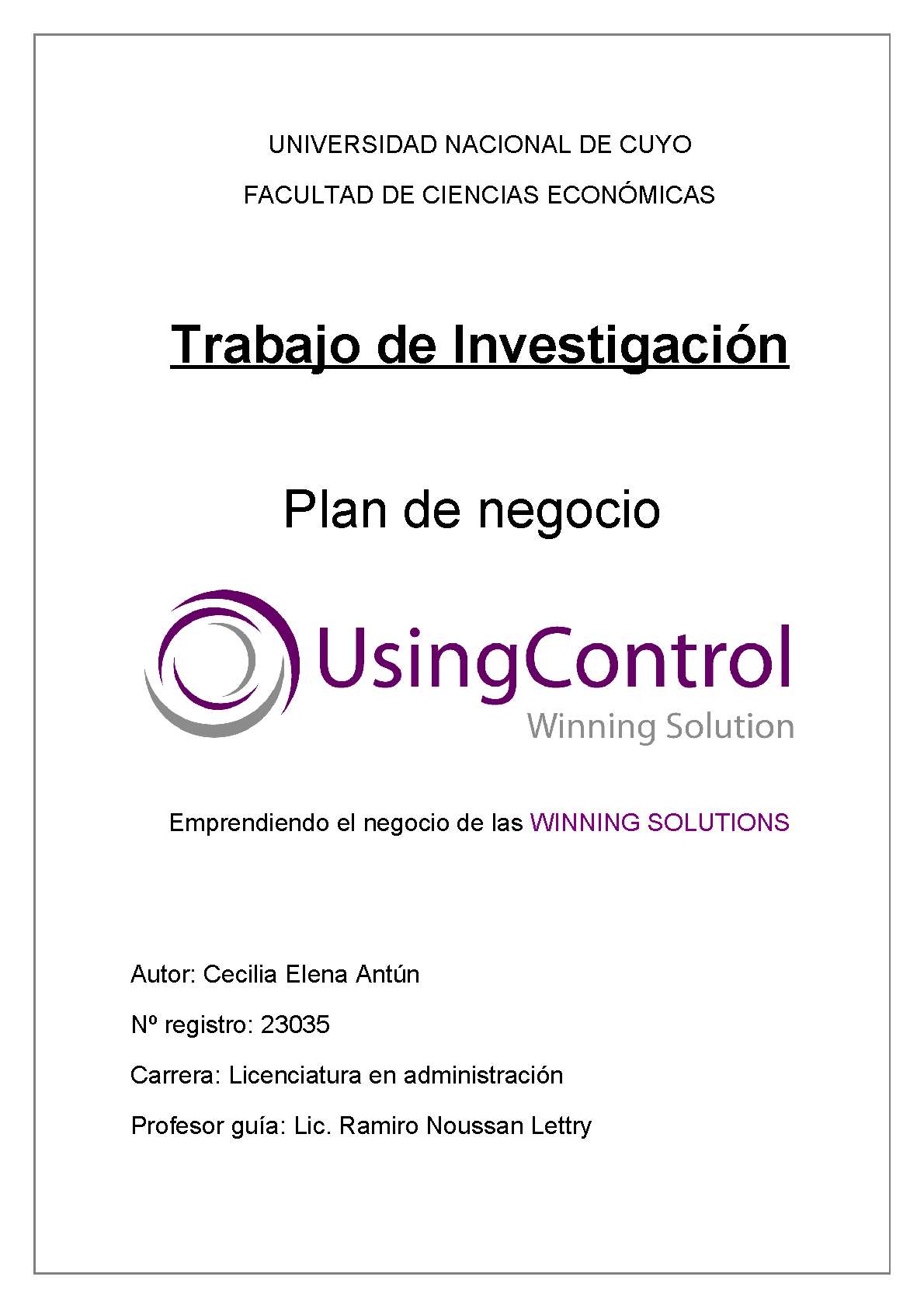 Plan de negocio de using control, winning solutions