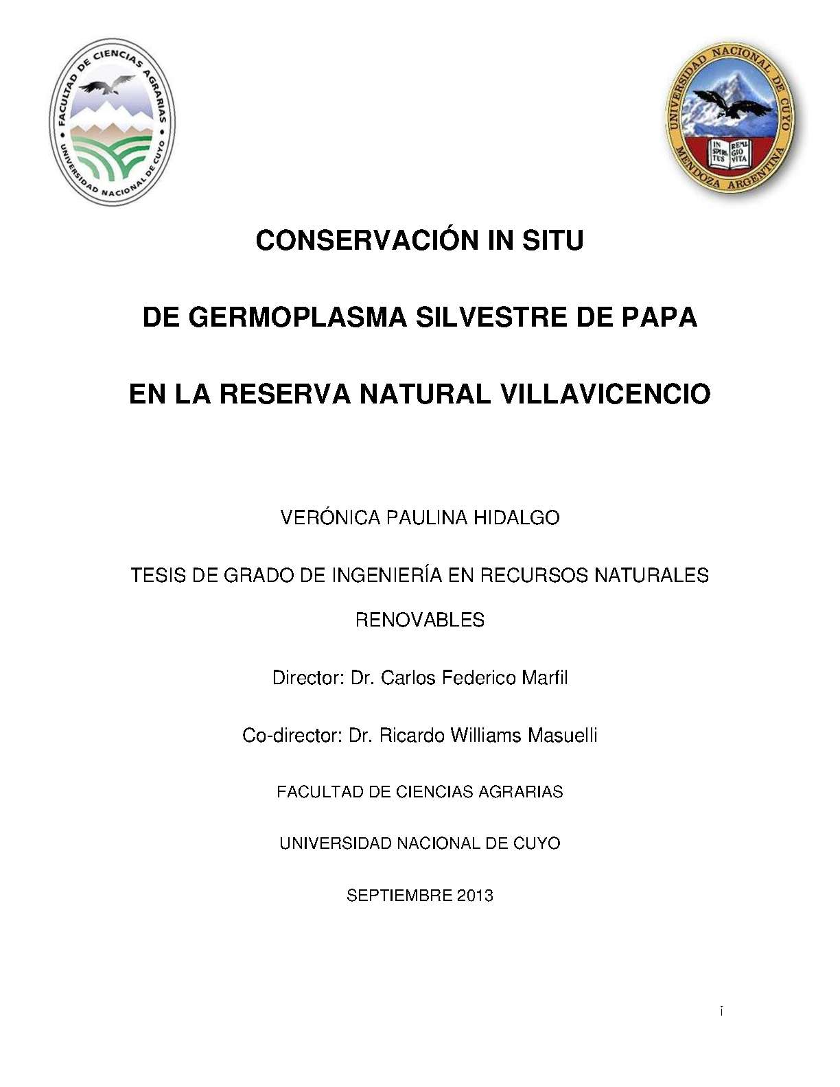 RESERVA NATURAL VILLAVICENCIO (MENDOZA, ARGENTINA) - DIVERSIDAD BIOLÓGICA - CONSERVACIÓN DEL GERMOPLASMA - PAPA - ESPACIOS NATURALES PROTEGIDOS - RESERVAS NATURALES - SOLANUM - GERMOPLASMA - RECURSOS GENÉTICOS