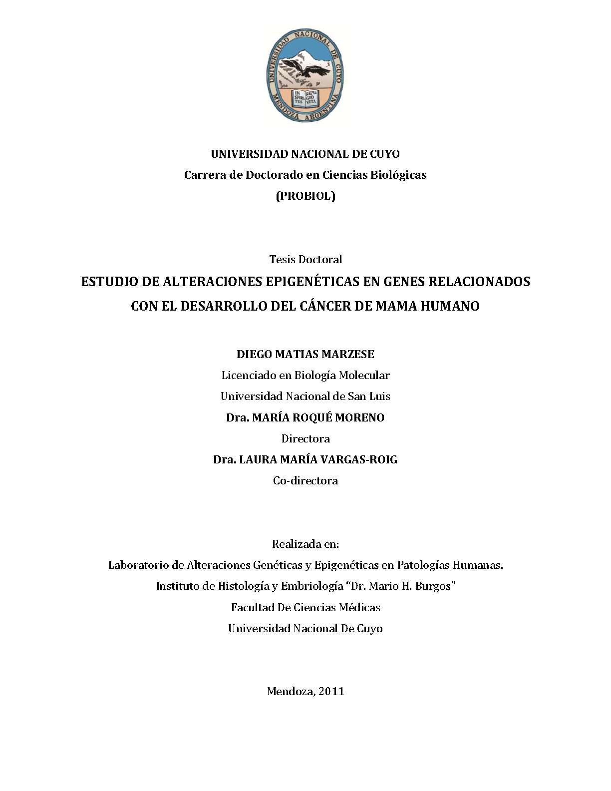 Estudio de alteraciones epigenéticas en genes relacionados con el desarrollo del cáncer de mama humano