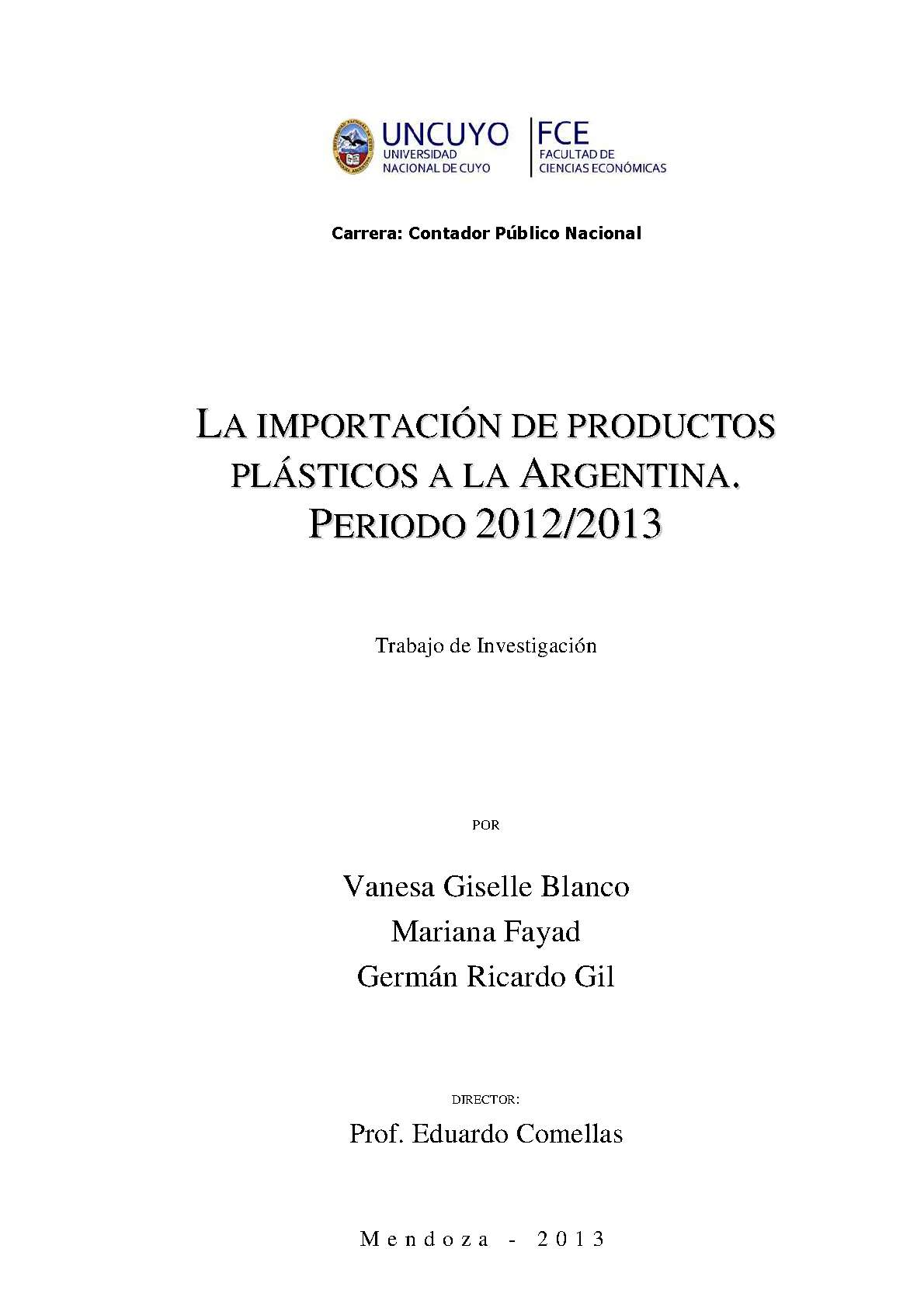 ARGENTINA - COMERCIO EXTERIOR - COMERCIO INTERNACIONAL - ECONOMÍA ARGENTINA - IMPORTACIONES - PRODUCTOS PLÁSTICOS - INDUSTRIA DEL PLÁSTICO - PLÁSTICOS - PEQUEÑA Y MEDIANA EMPRESA - DECLARACIÓN DE IMPORTACIÓN - PEQUEÑA Y MEDIANA EMPRESA