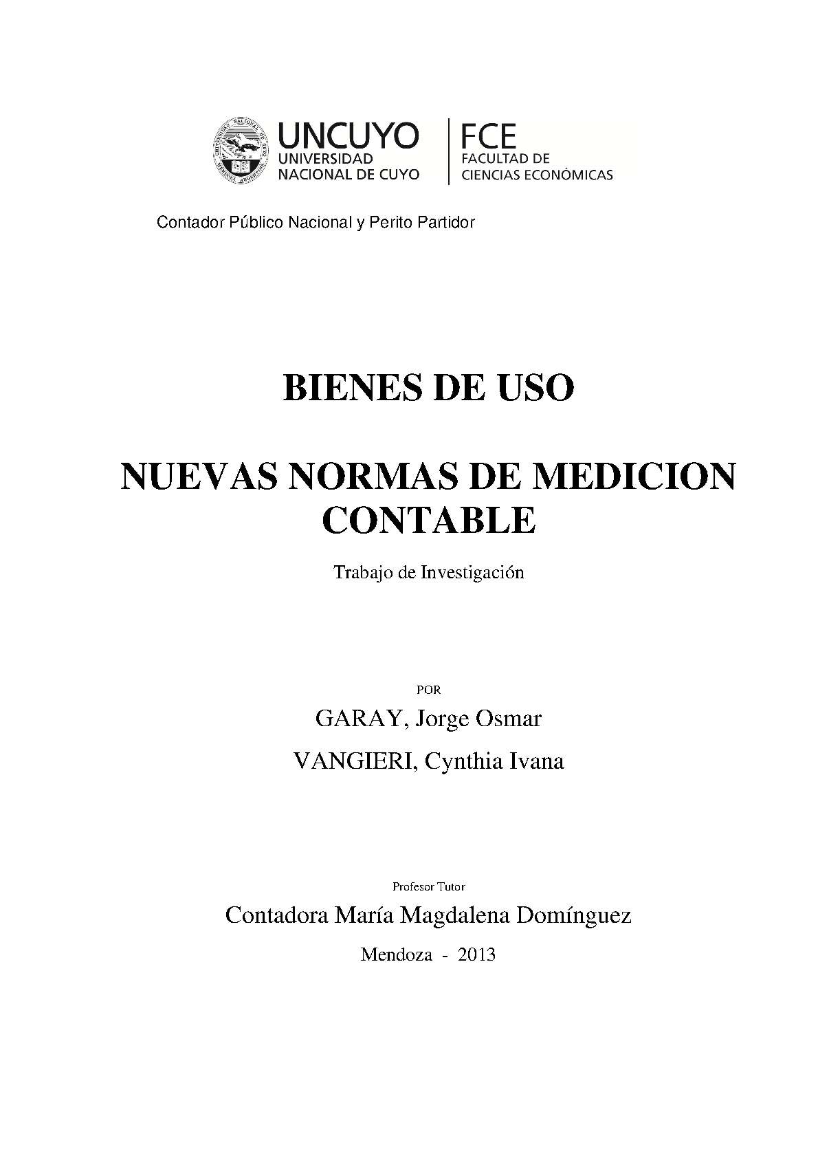 Garay, Jorge Osmar; Vangieri, Cynthia Juana. (2013). Bienes de uso: nuevas normas de medición contable (Trabajo final de grado). Mendoza, Universidad Nacional de Cuyo. Facultad de Ciencias Económicas.