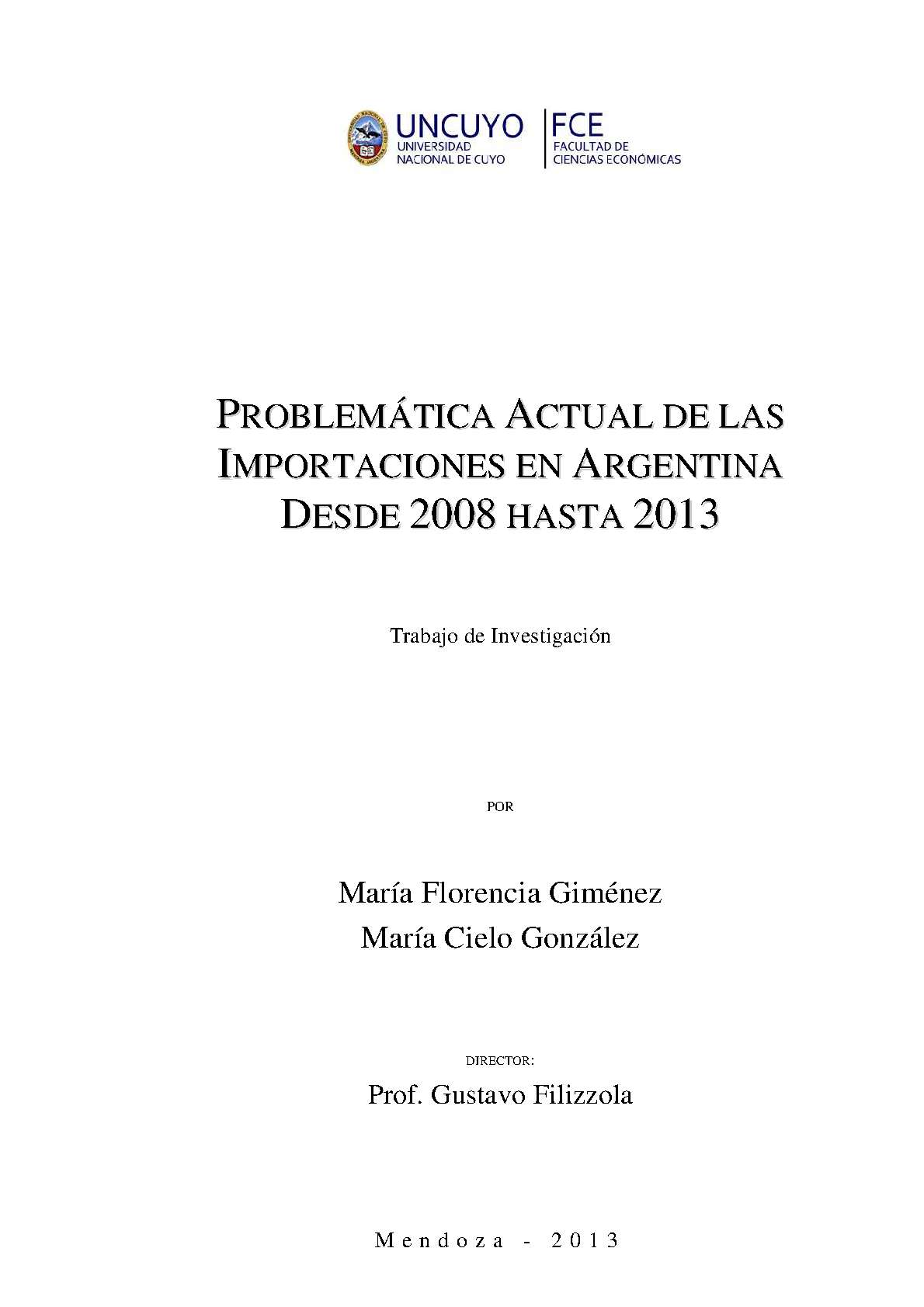 Problemática actual de las importaciones en Argentina desde el 2008 hasta 2013
