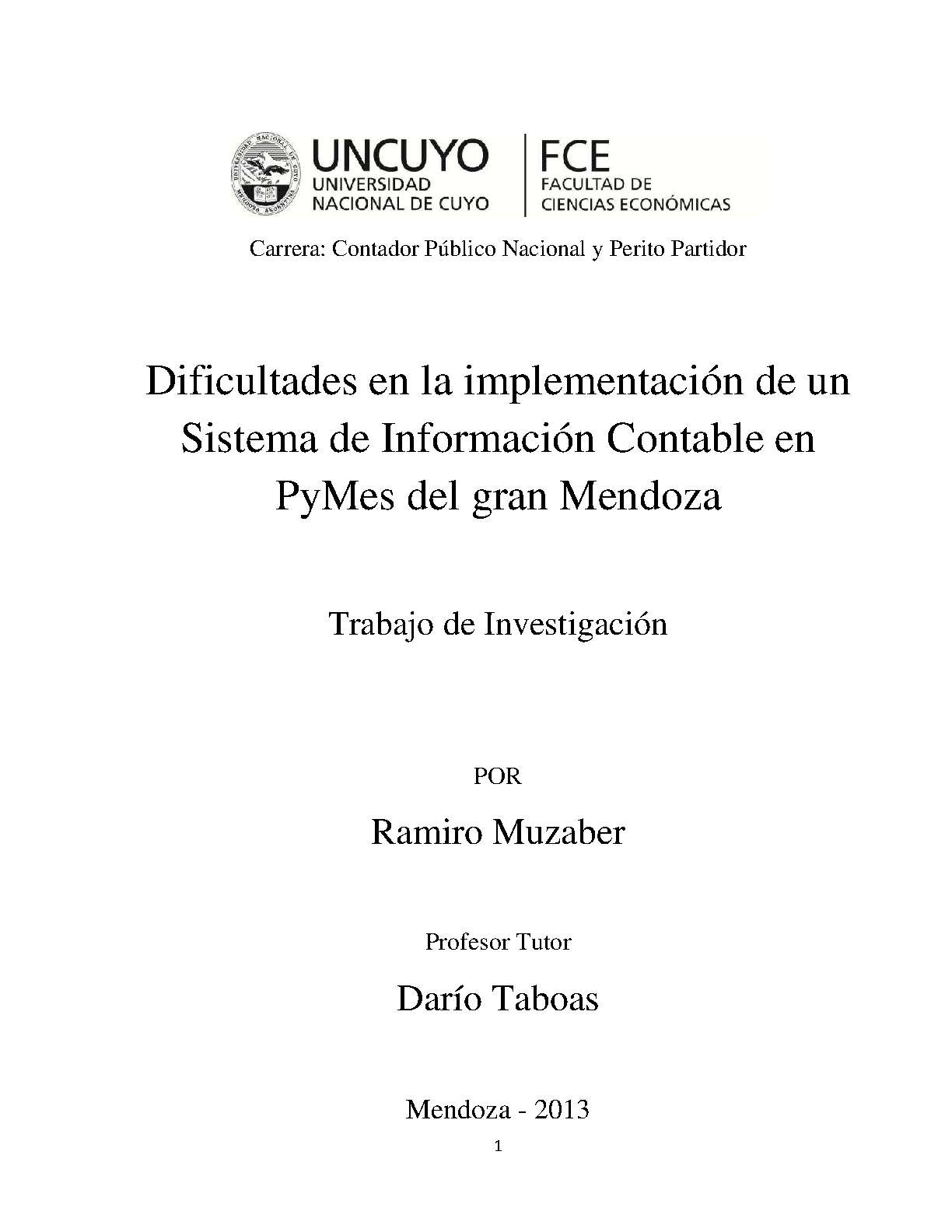 Dificultades en la implementación de un Sistema de Información Contable en PyMes del gran Mendoza