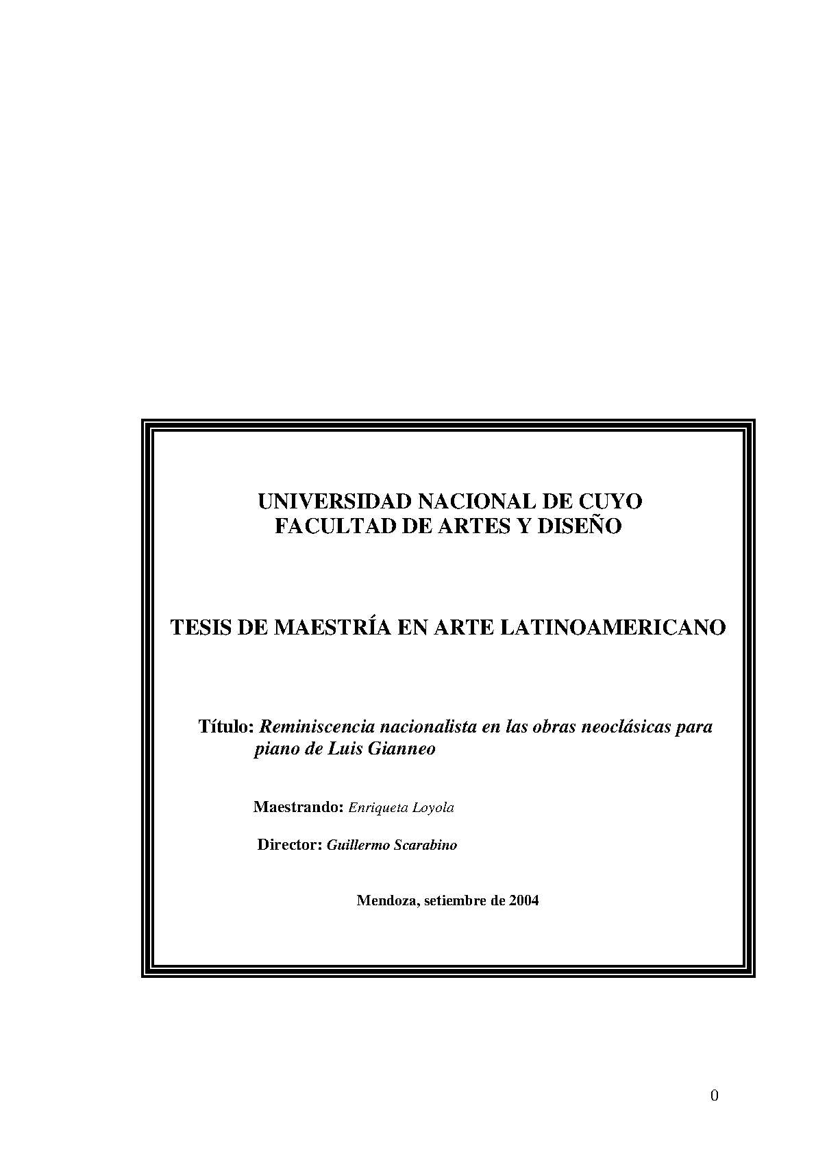 Loyola, María Enriqueta. (2004). Reminiscencia nacionalista en las obras neoclásicas para piano de Luis Gianneo: (Tesis de Maestría). Mendoza, Universidad Nacional de Cuyo. Facultad de Artes y Diseño .