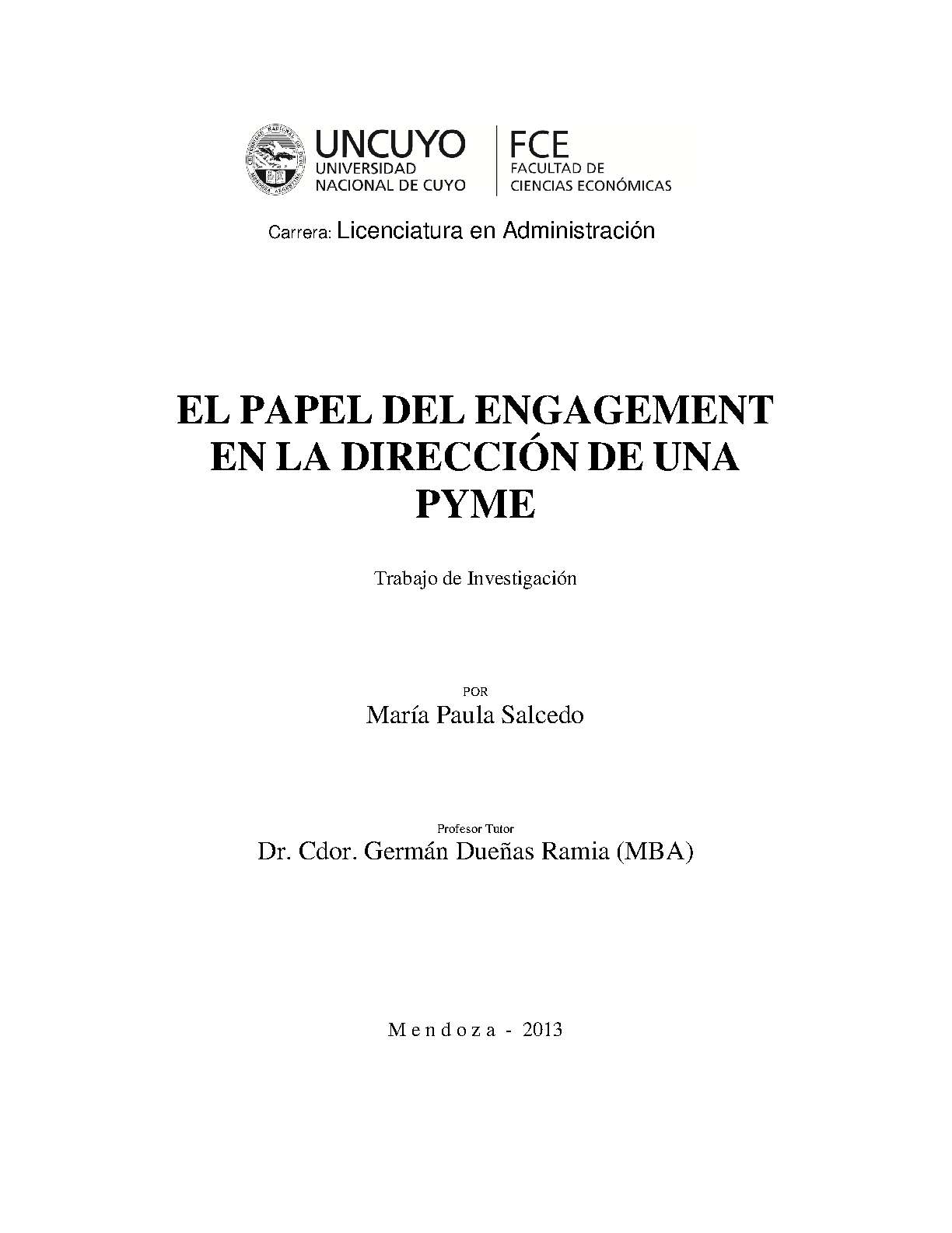Salcedo, María Paula. (2013). El papel del engagement en la dirección de una PyME: (Trabajo final de grado). Mendoza, Universidad Nacional de Cuyo. Facultad de Ciencias Económicas.