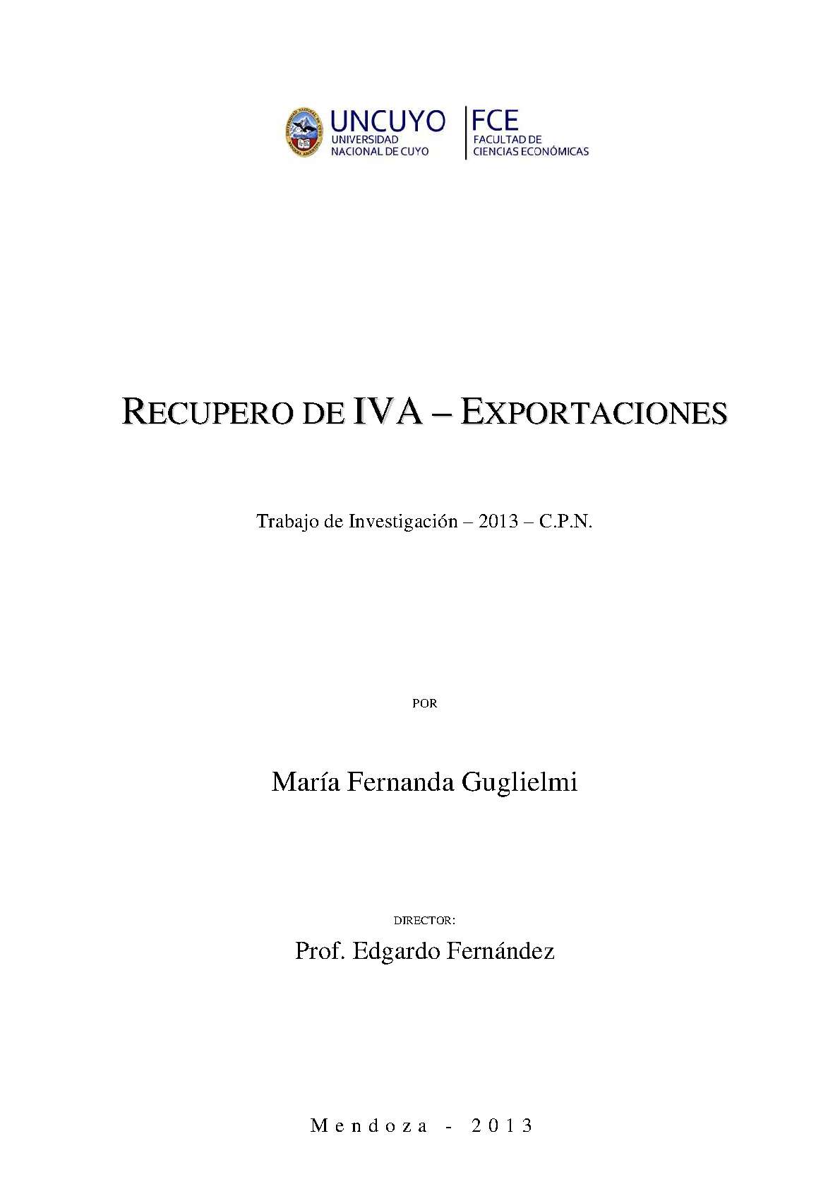 Guglielmi, Fernanda. (2013). Recupero de IVA - Exportaciones: (Trabajo final de grado). Mendoza, Universidad Nacional de Cuyo. Facultad de Ciencias Económicas.