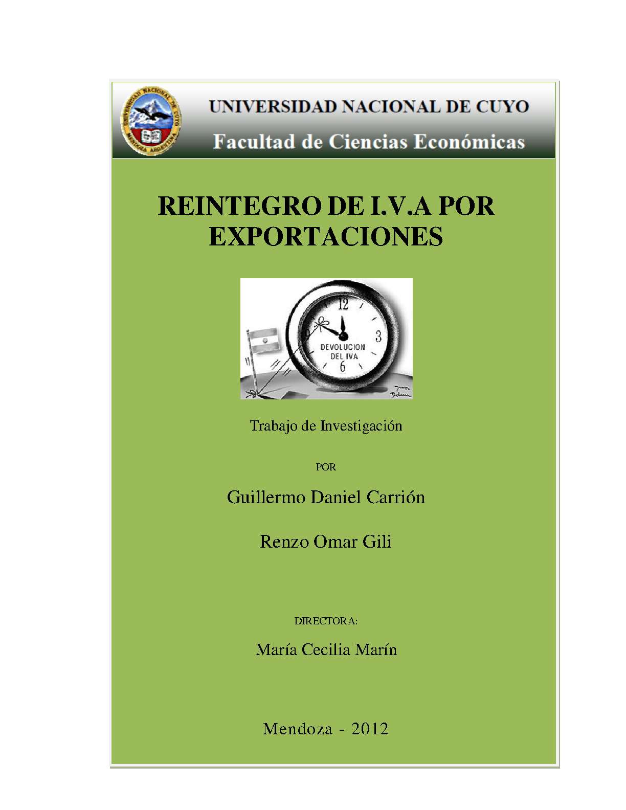 Carrión, Guillermo Daniel; Gili Carrillo, Renzo Omar. (2013). Reintegro del IVA por exportaciones: (Trabajo final de grado). Mendoza, Universidad Nacional de Cuyo. Facultad de Ciencias Económicas.