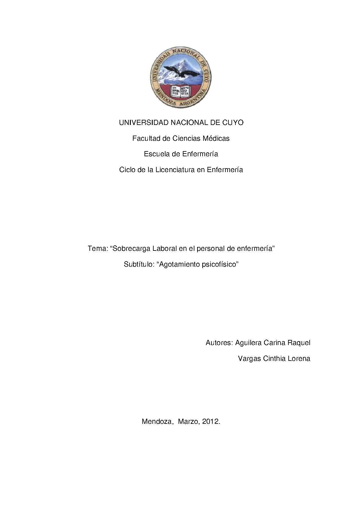 AGOTAMIENTO PROFESIONAL - ENFERMEDAD PROFESIONAL - SANATORIO Y CLÍNICA RIVADAVIA (SAN LUIS, ARGENTINA) - ENFERMERÍA - ESTRÉS LABORAL - CONDICIONES DE TRABAJO - CARGA DE TRABAJO - PACIENTES
