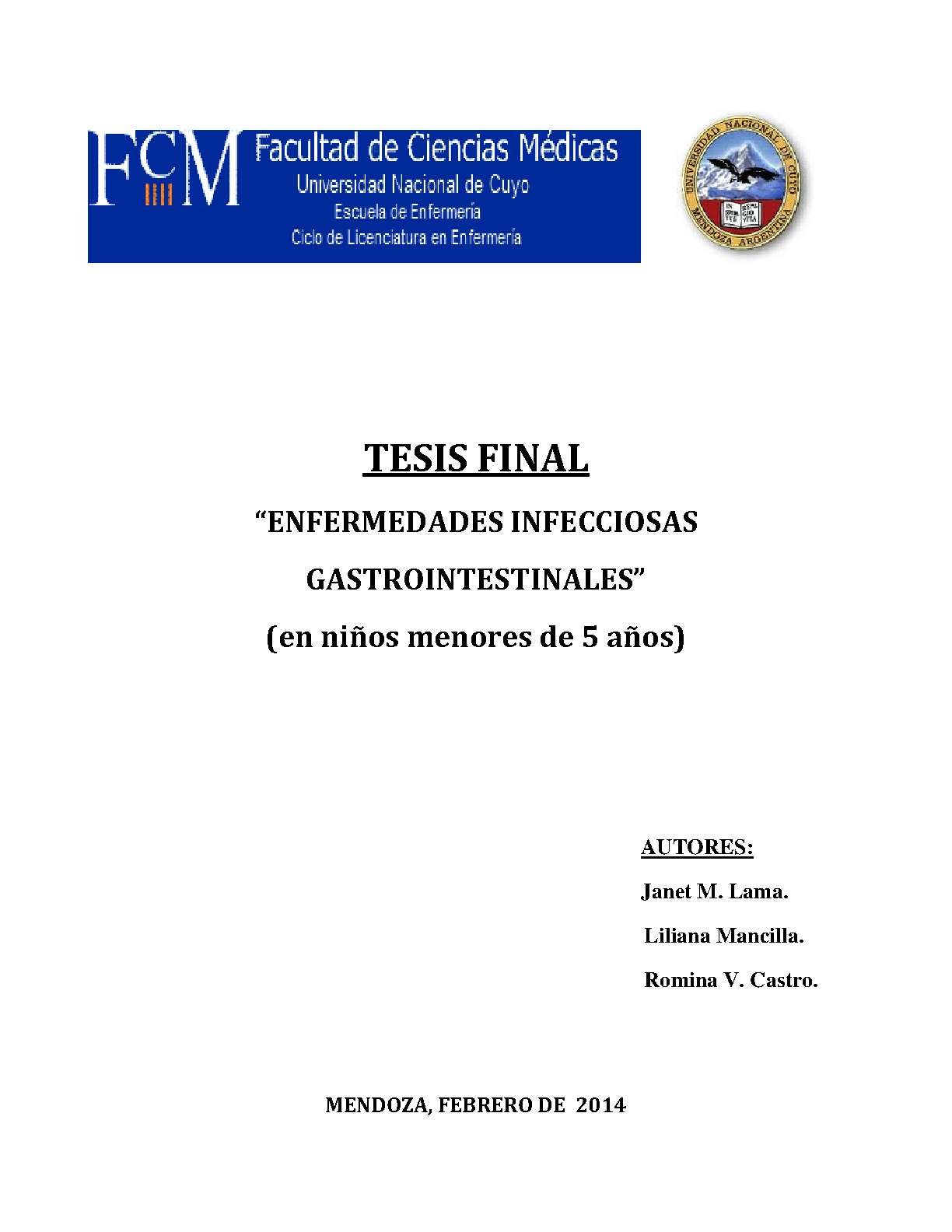 El presente trabajo fue realizado en el Servicio de Internación Pediátrica NºII del Hospital Dr. Humberto Notti, ubicado en Banderas de los Andes 2603, en el departamento de Guaymallén. Está orientado a investigar la relación que existe entre la aparición de infecciones gastrointestinales y el origen social, tomando como muestra a los pacientes menores de 5 años internados en dicho servicio comprendidos entre los meses de septiembre, octubre y noviembre de 2013.