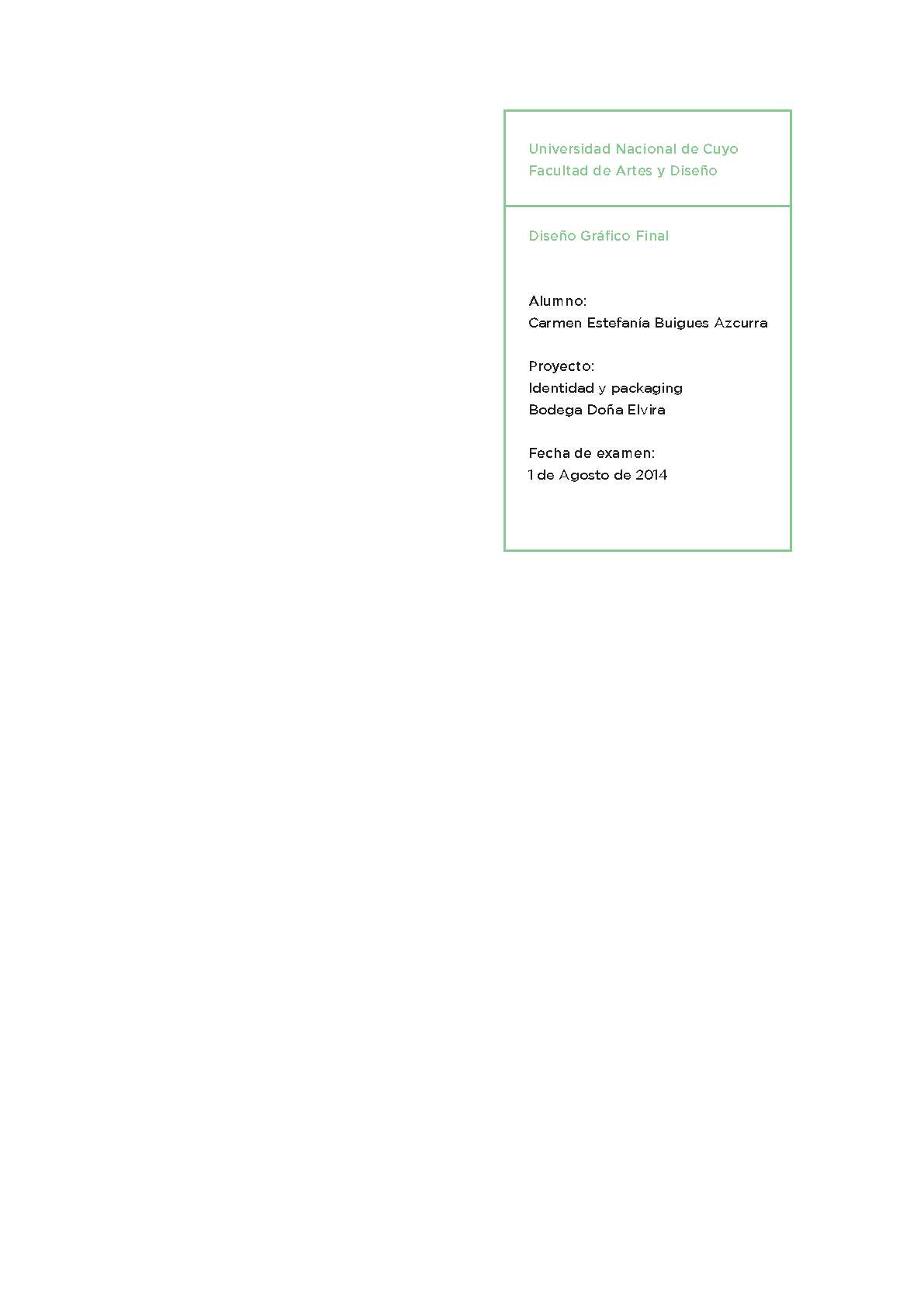 Buigues Azcurra, Carmen Estefanía. (2014). Identidad y packaging Bodega Doña Elvira : (Trabajo final de grado). Mendoza, Universidad Nacional de Cuyo. Facultad de Artes y Diseño .