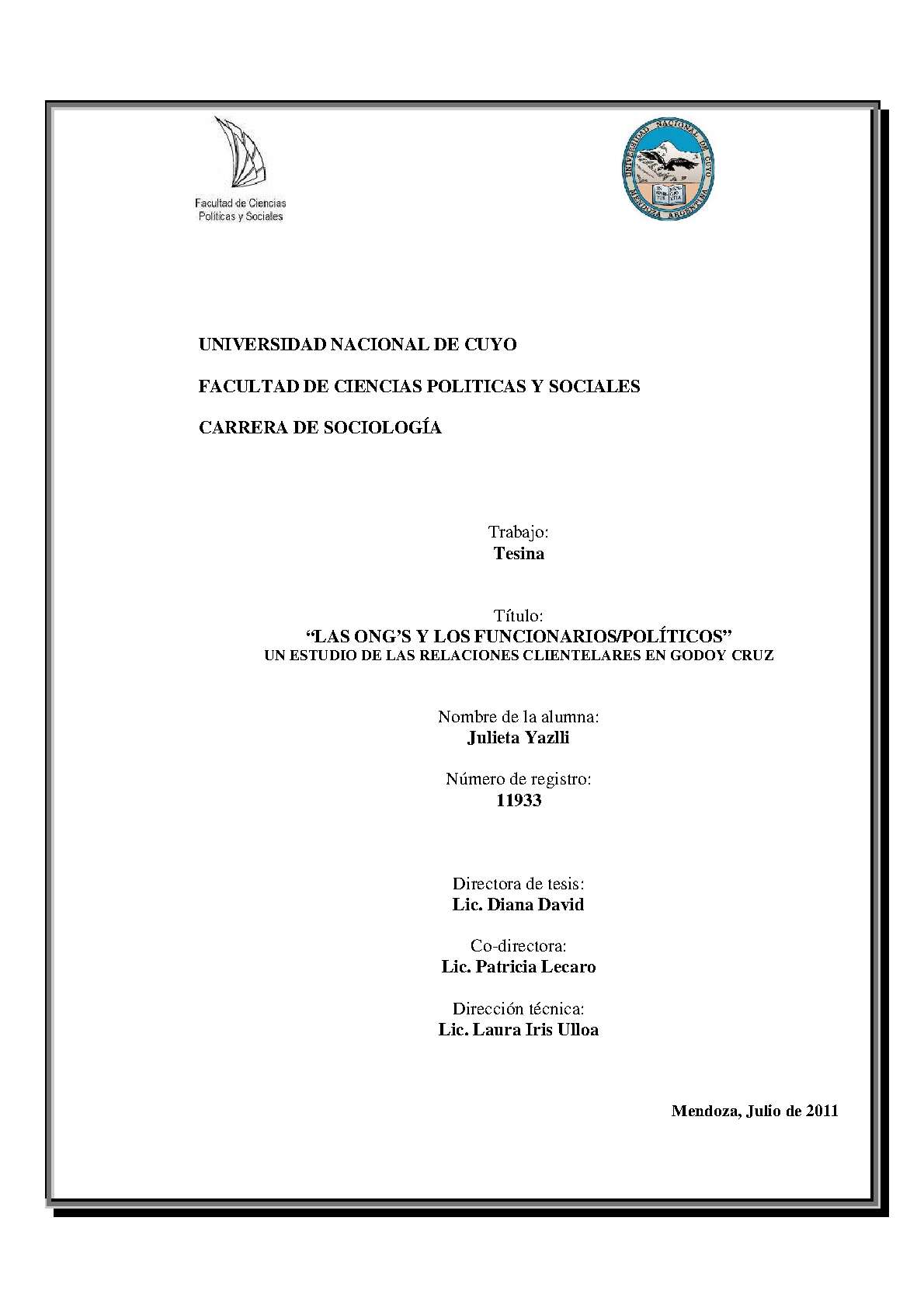 ORGANIZACIONES NO GUBERNAMENTALES - GODOY CRUZ (MENDOZA, ARGENTINA) - FUNCIONARIO PÚBLICO - LÍDERES POLÍTICOS - CLIENTELISMO - RELACIONES DE PODER