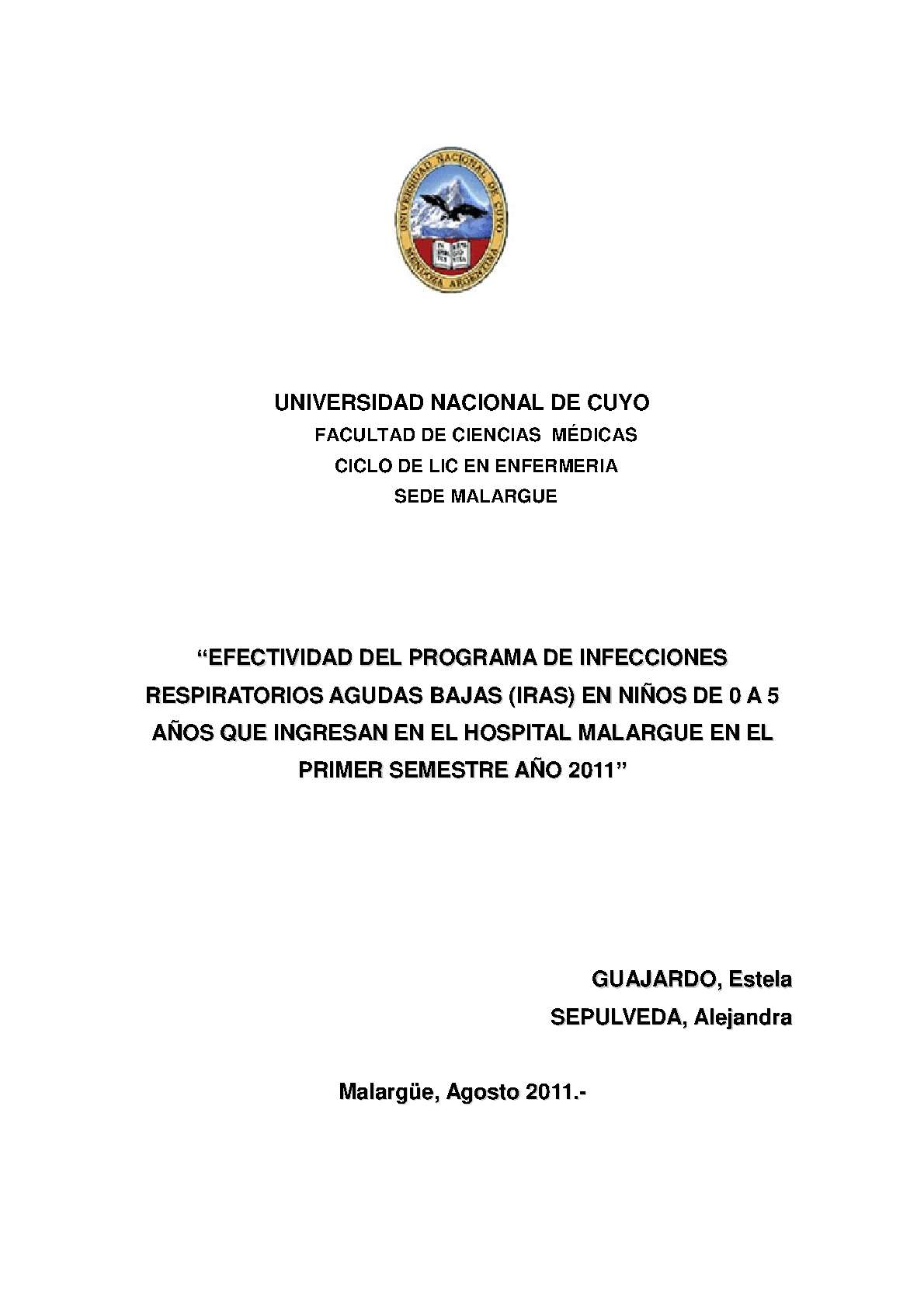Efectividad del programa de infecciones respiratorias agudas bajas (IRAS) en niños de 0 a 5 años que ingresan en el Hospital Malargüe en el primer semestre año 2011