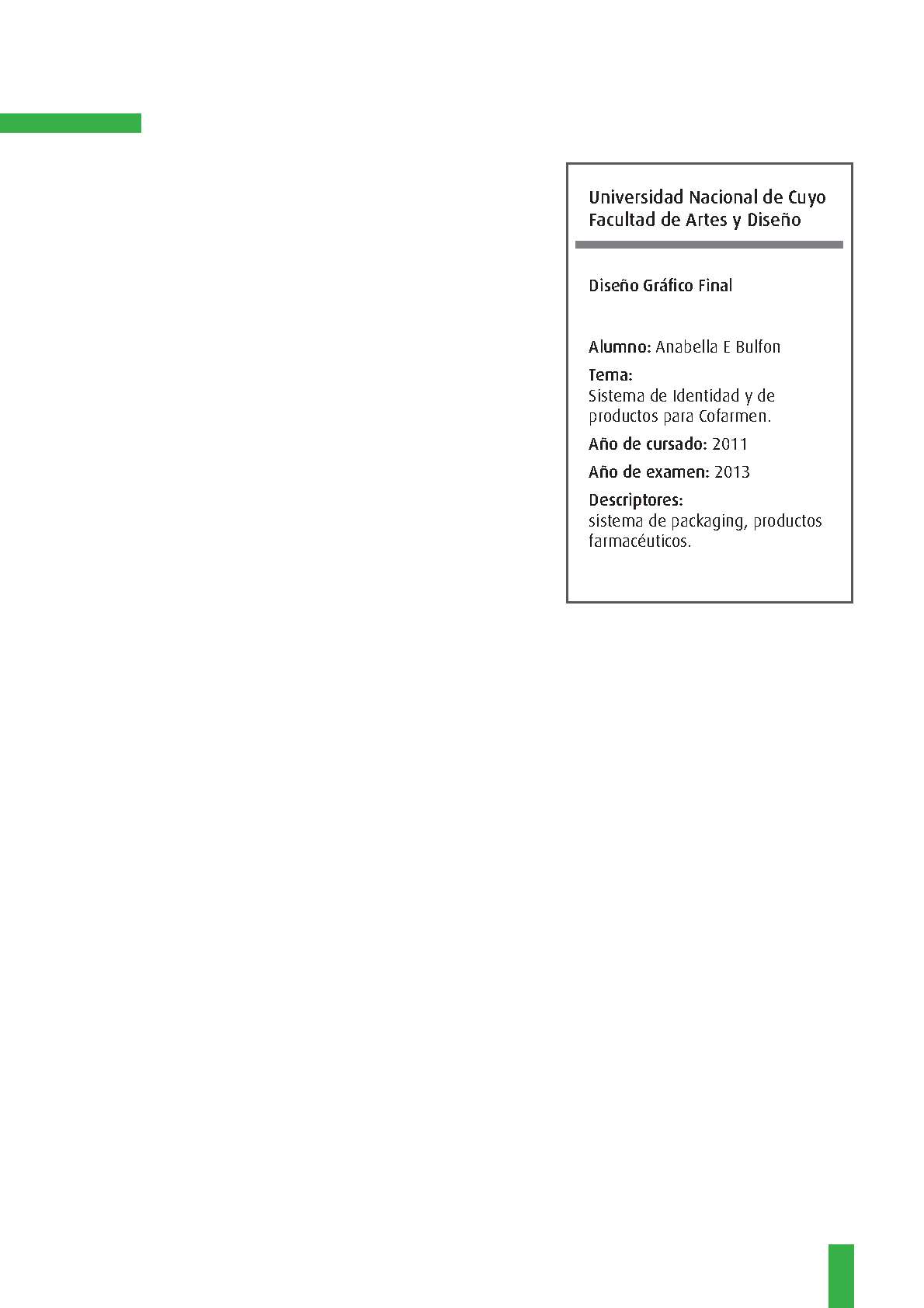 Bulfón, Anabella E.. (2013). Sistema de identidad y de productos para Cofarmen: (Tesina de grado). Mendoza, Universidad Nacional de Cuyo. Facultad de Artes y Diseño .