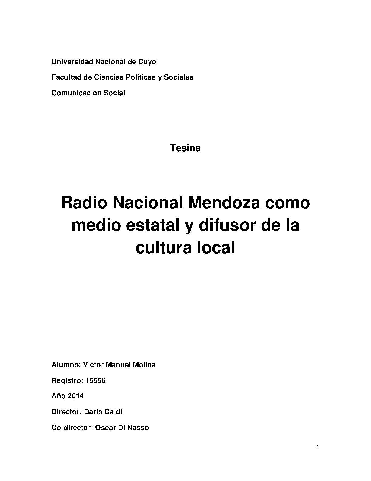 MENDOZA (ARGENTINA : PROVINCIA) - MEDIOS DE COMUNICACIÓN DE MASAS - POLÍTICA DE COMUNICACIÓN - DIFUSIÓN DE INFORMACIÓN - RADIODIFUSIÓN - COMUNICACIÓN SOCIAL - RADIO NACIONAL MENDOZA - MEDIOS DE COMUNICACIÓN DE MASAS - CULTURA MENDOCINA - DIFUSIÓN DE LA CULTURA
