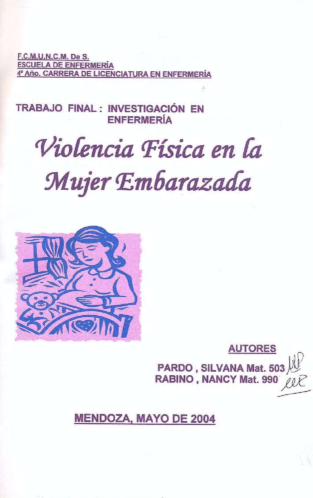 Pardo, Silvana; Rabino, Nancy. (2004). Violencia física en la mujer embarazada: (Tesina de grado). Mendoza, Universidad Nacional de Cuyo. Facultad de Ciencias Médicas. Escuela de Enfermería..