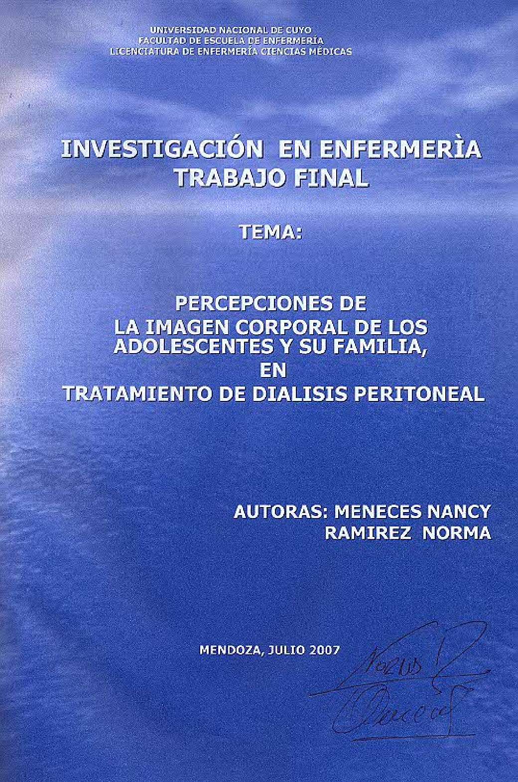 DIÁLISIS PERITONEAL - IMÁGEN CORPORAL - ADOLESCENTES - HOSPITAL HUMBERTO NOTTI (GUAYMALLÉN, MENDOZA, ARGENTINA) - JÓVENES - CALIDAD DE VIDA - INSUFICIENCIA RENAL - PAPEL DE LA FAMILIA - PERSONAL DE ENFERMERÍA