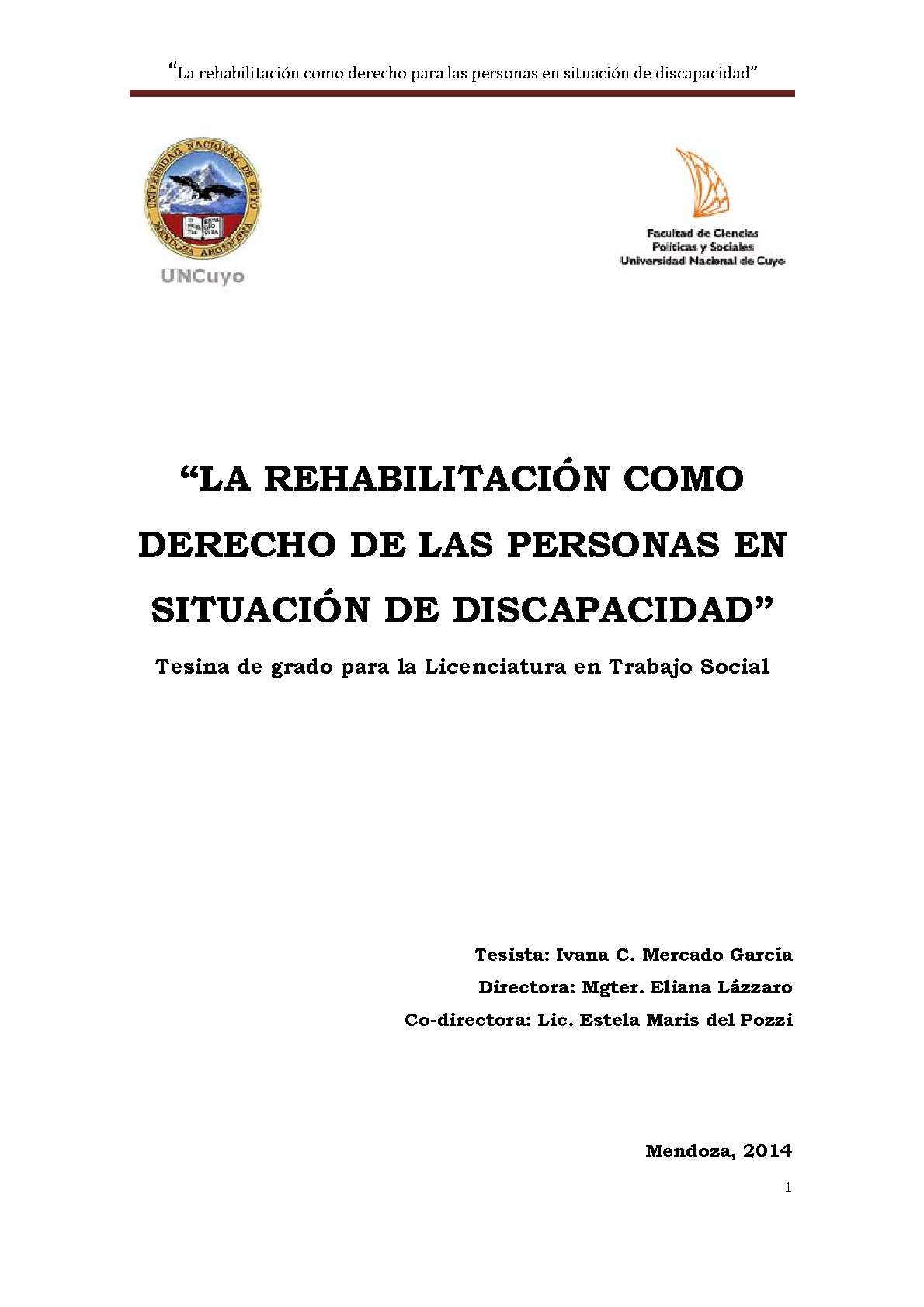 Este trabajo tiene como finalidad poder conocer el proceso de acceso a la rehabilitación en un nosocomio de la Provincia de Mendoza, único efector que ofrece este servicio a nivel estatal y quienes pueden acceder o no. Esta inquietud surge de la experiencia vivida en las prácticas pre profesionales realizadas en el Servicio de Rehabilitación del Hospital Lencinas. El presenciar día a día diferentes situaciones y realidades, generó la motivación y las ganas de profundizar e indagar en la importancia que tiene la rehabilitación en la vida de las personas en situación de discapacidad y los niveles de acceso a la misma.