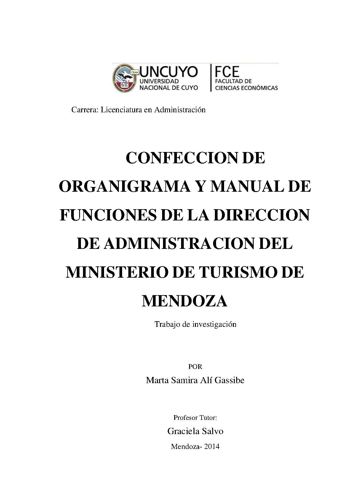 Confección de organigrama y manual de funciones de la Dirección de Administración del Ministerio de Turismo de Mendoza