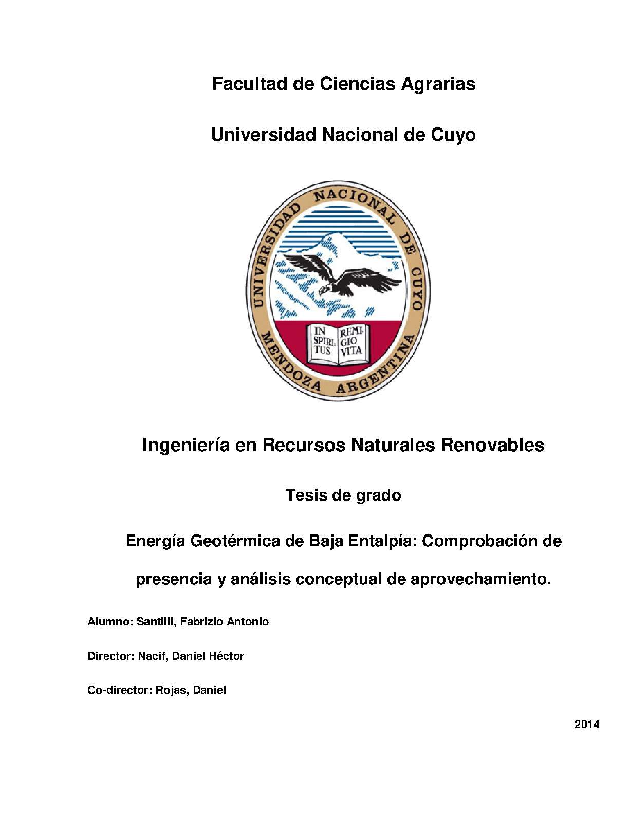 La energía geotérmica es un tipo de energía potencialmente renovable. La misma presenta varias tipologías, siendo la de baja entalpía la que posee mayor disponibilidad en todo el mundo. Este tipo de energía se puede utilizar para climatizar ambientes, durante todo el año, debido a la estabilidad térmica que la misma brinda.