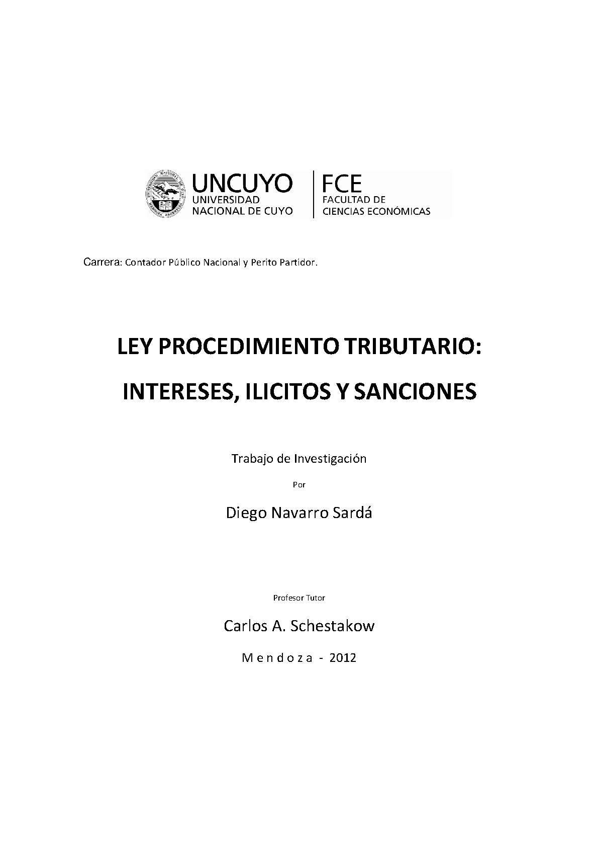 Navarro Sardá, Diego. (2012). Ley de procedimiento tributario: intereses, ilícitos y sanciones (Trabajo final de grado). Mendoza, Universidad Nacional de Cuyo. Facultad de Ciencias Económicas.
