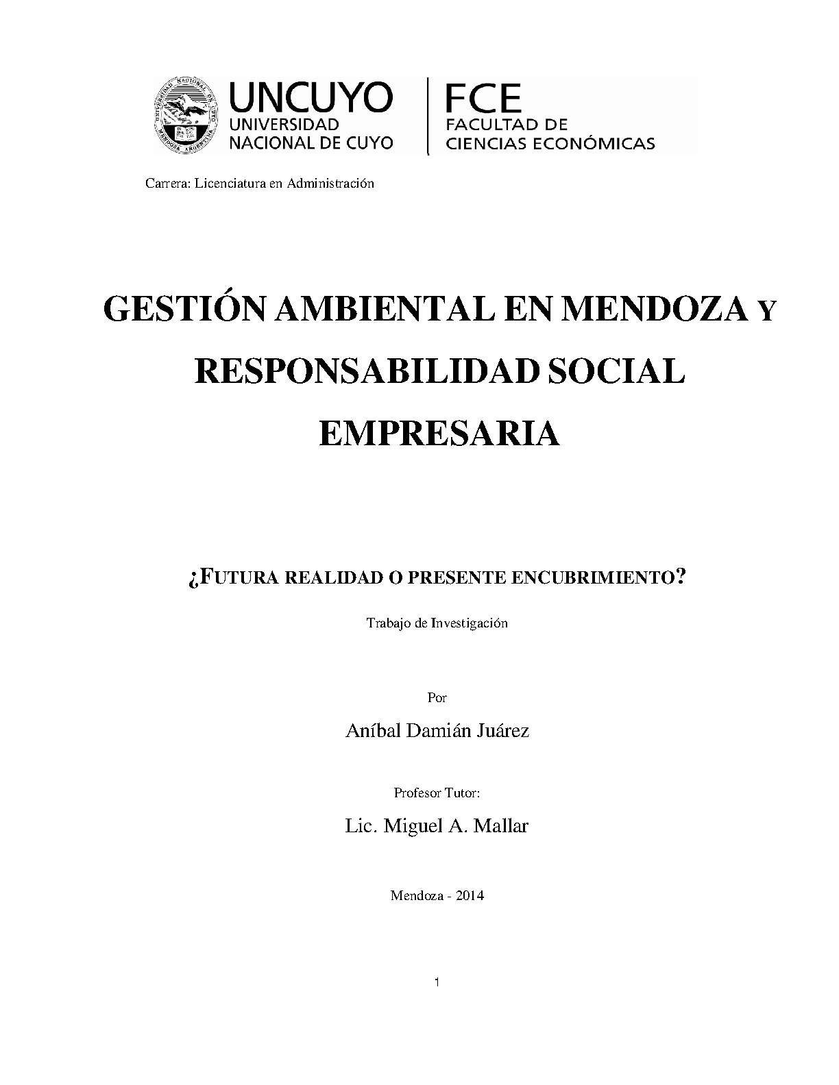 Gestión ambiental en Mendoza y responsabilidad social empresaria