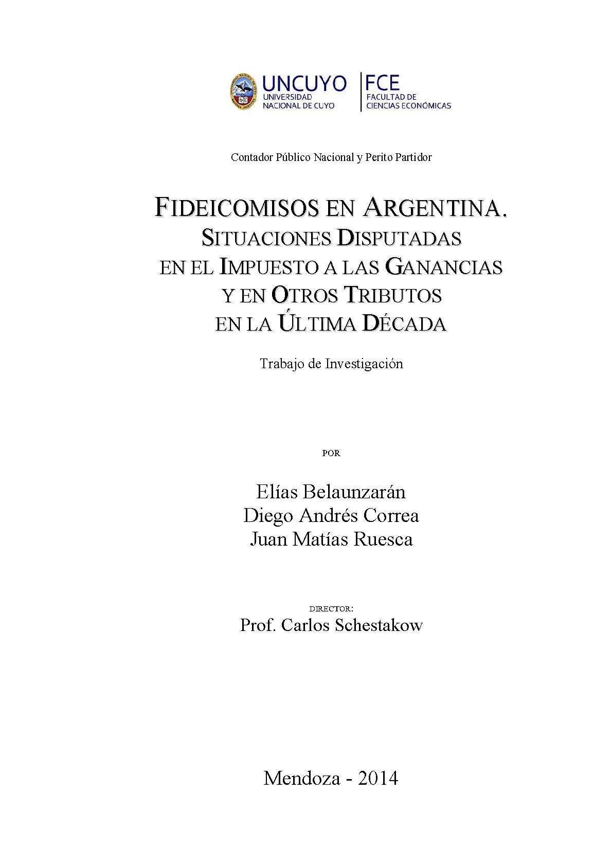 Belaunzarán, Elías; Correa Tello, Diego Andrés; Ruesca, Juan Matías. (2014). Fideicomisos en Argentina: situaciones disputadas en el impuesto a las ganancias y en otros tributos de la última década (Trabajo final de grado). Mendoza, Universidad Nacional de Cuyo. Facultad de Ciencias Económicas.