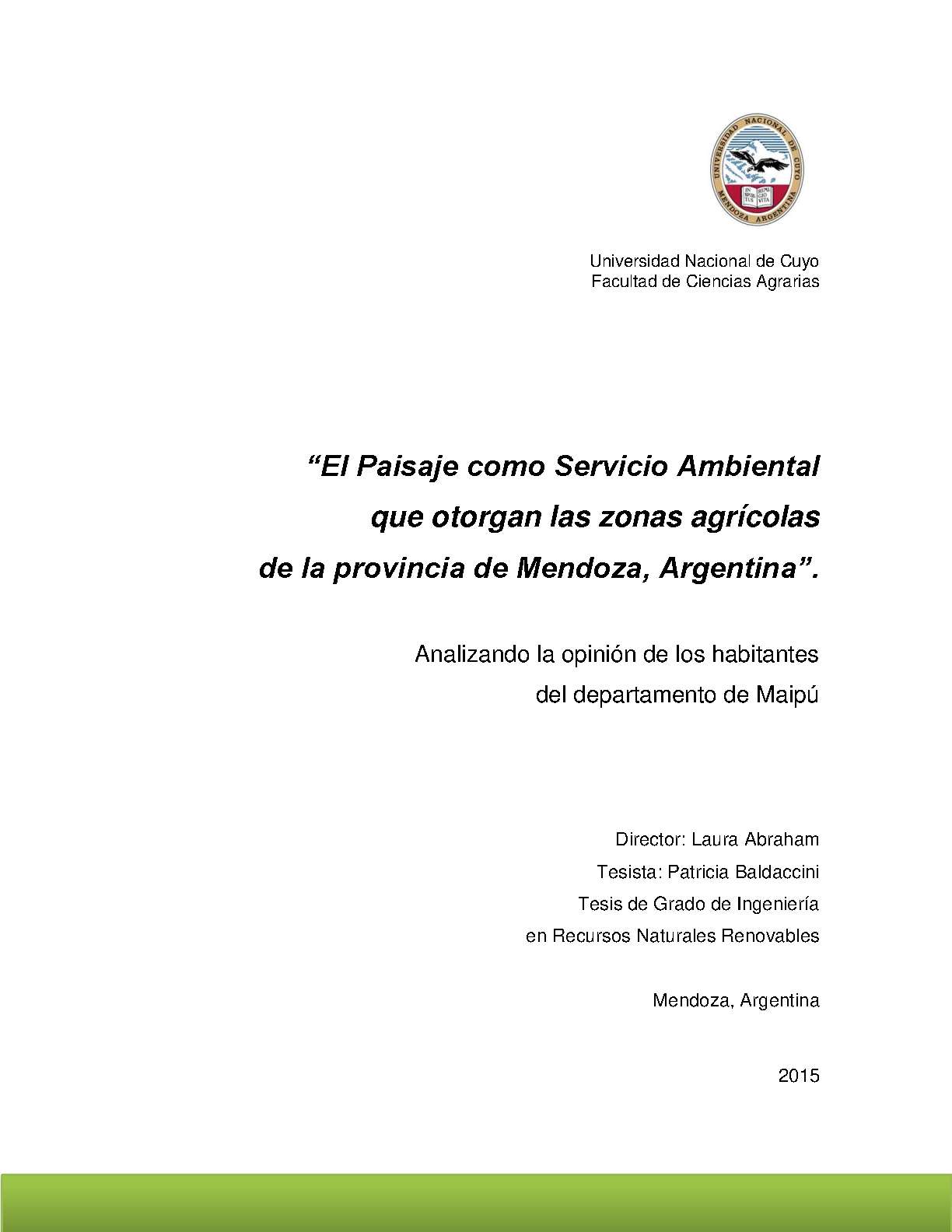 El Paisaje como Servicio Ambiental que otorgan las zonas agrícolas de la provincia de Mendoza, Argentina