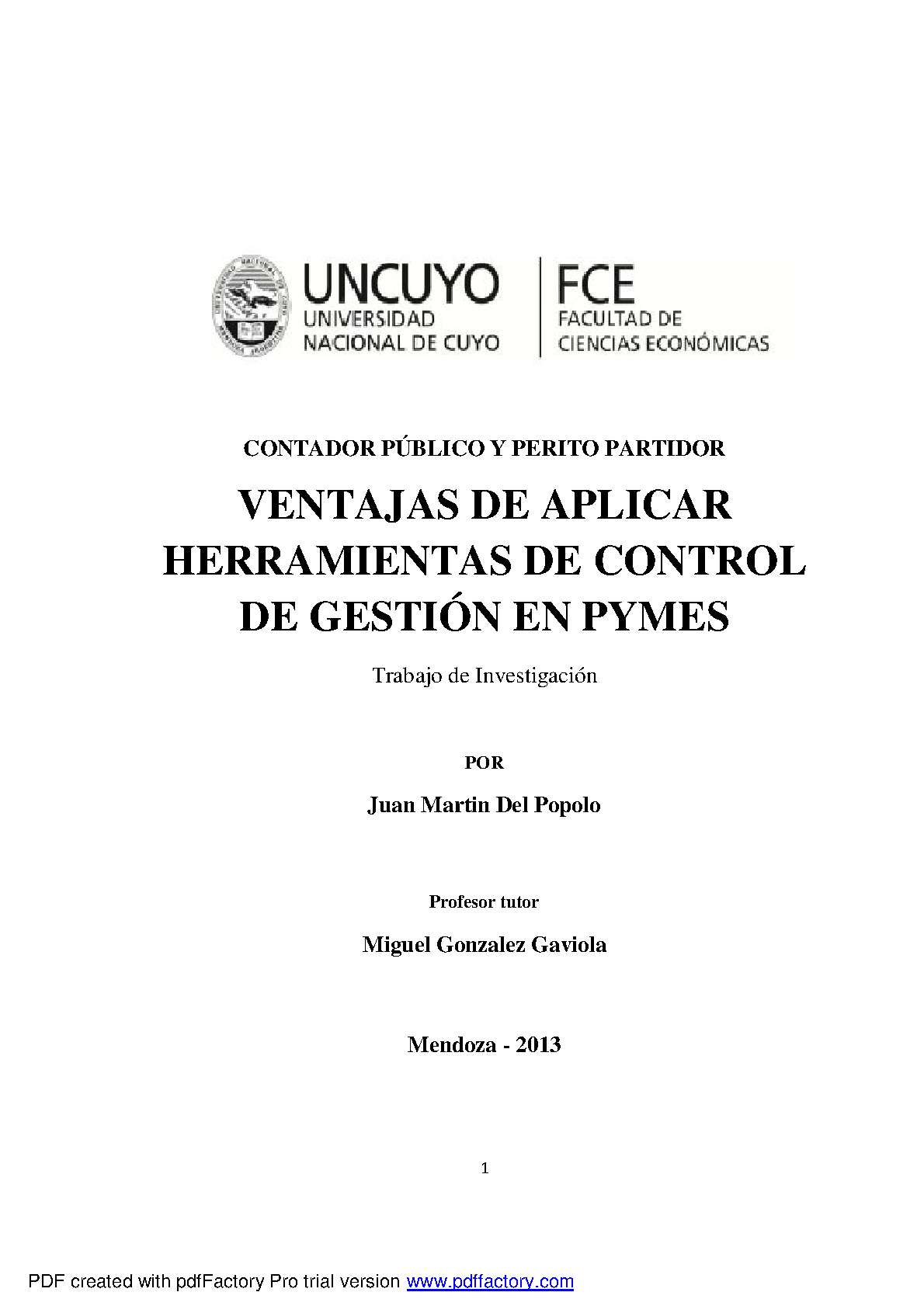 Del Popolo, Juan Martín. (2013). Ventajas de aplicar herramientas de control de gestión en pymes: (Trabajo final de grado). Mendoza, Universidad Nacional de Cuyo. Facultad de Ciencias Económicas.