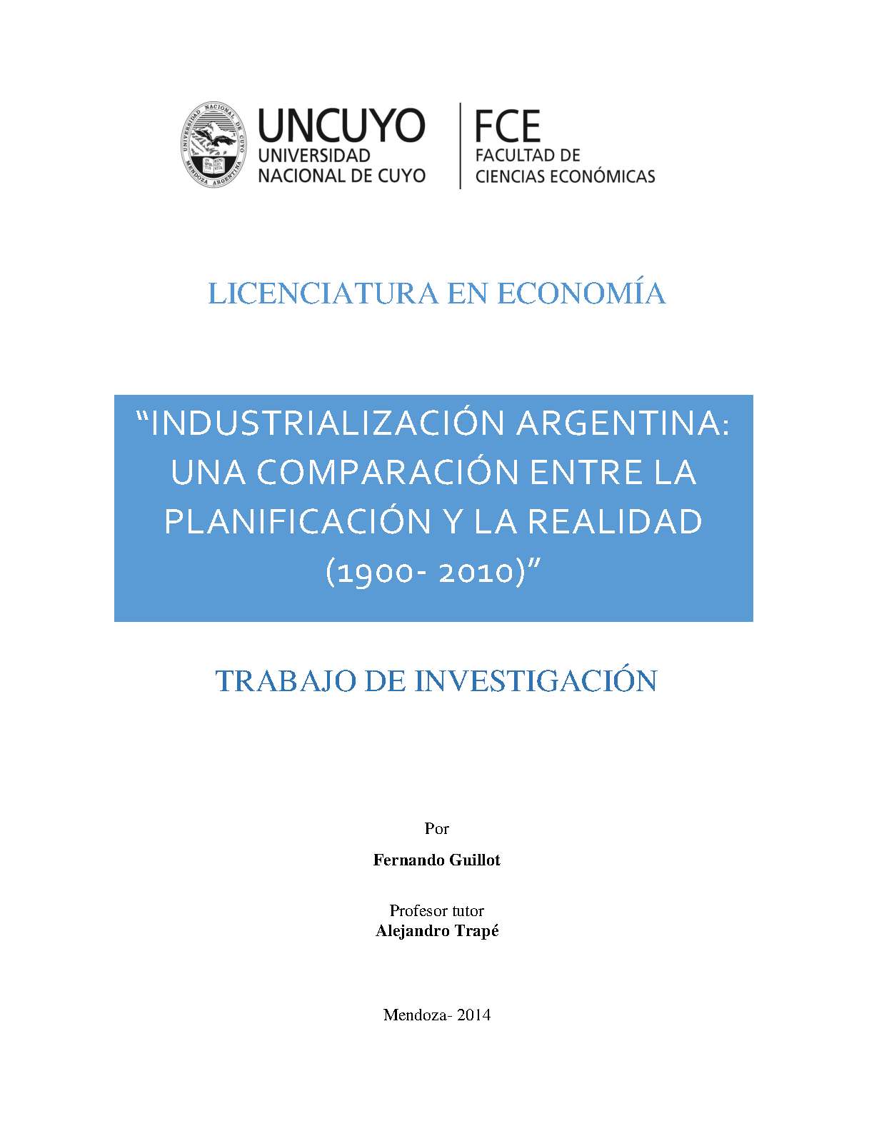 Guillot, Fernando. (2014). Industrialización argentina: una comparación entre la planificación y la realidad (1900-2010) (Trabajo final de grado). Mendoza, Universidad Nacional de Cuyo. Facultad de Ciencias Económicas.