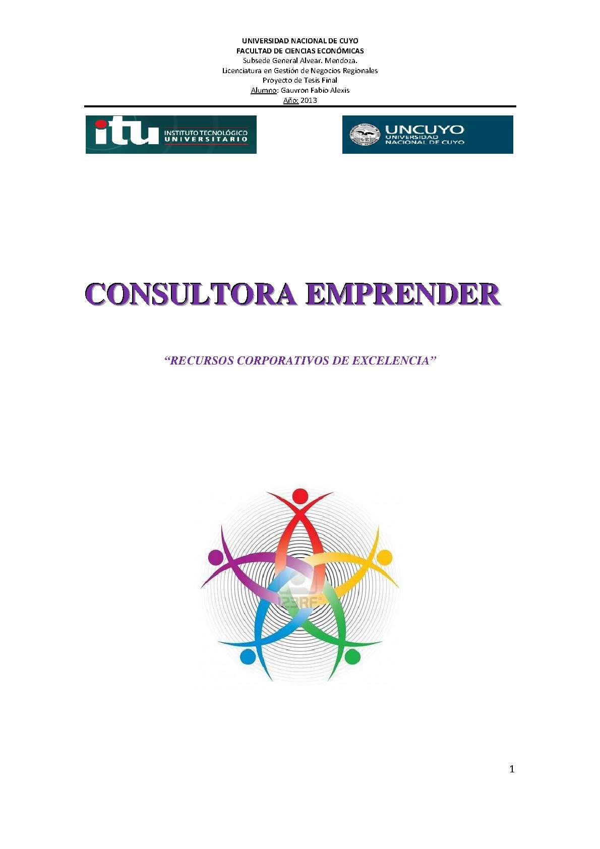 Gauvron, Fabio Alexis. (2013). Consultora Emprender: recursos corporativos de excelencia (Trabajo final de grado). Mendoza, Universidad Nacional de Cuyo. Facultad de Ciencias Económicas.