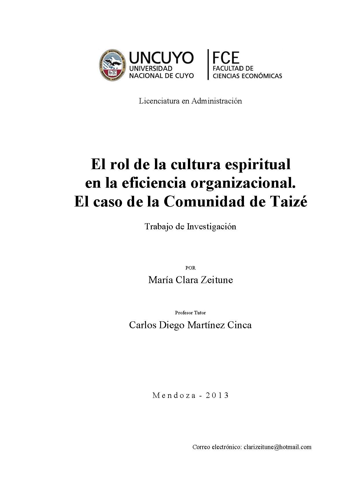 Zeitune, María Clara. (2013). El rol de la cultura espiritual en la eficiencia organizacional: el caso de la Comunidad de Taizé (Trabajo final de grado). Mendoza, Universidad Nacional de Cuyo. Facultad de Ciencias Económicas.
