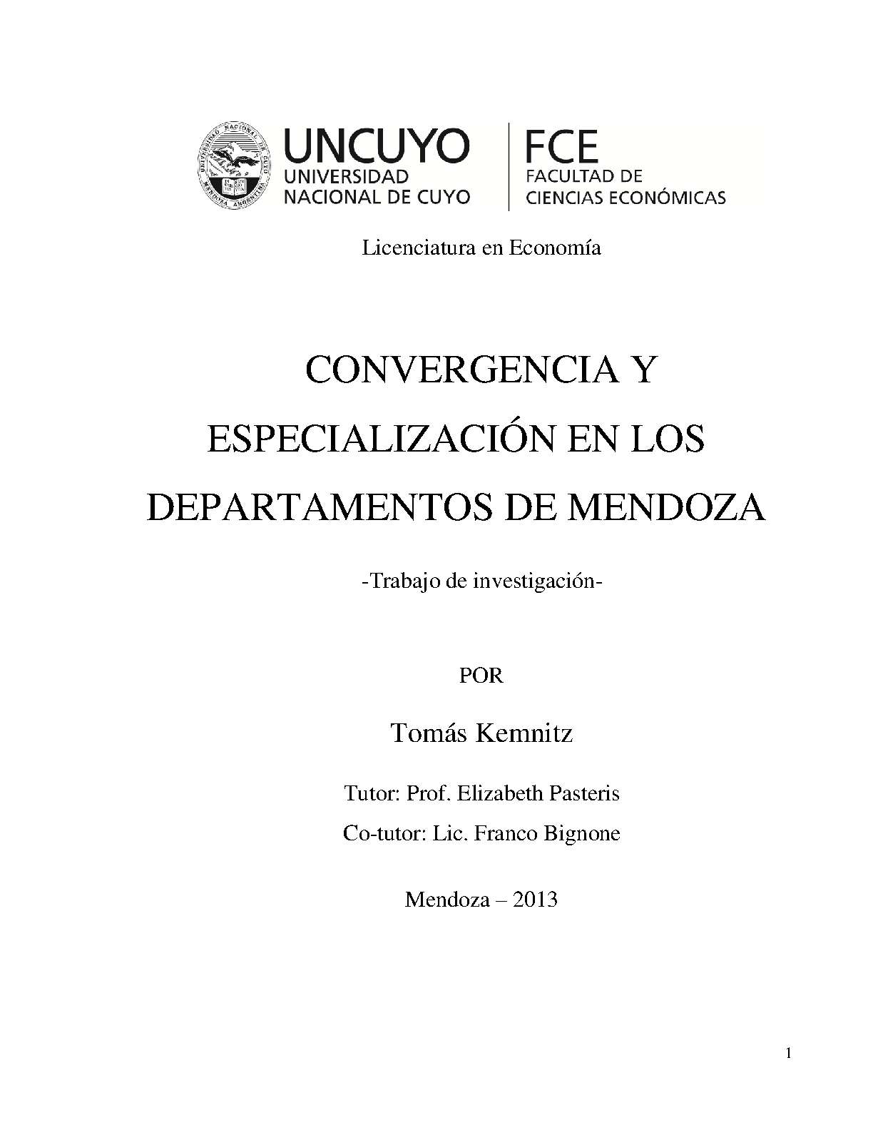 CONVERGENCIA ECONÓMICA - ESPECIALIZACIÓN DE LA PRODUCCIÓN - MENDOZA (ARGENTINA) - CRECIMIENTO ECONÓMICO
