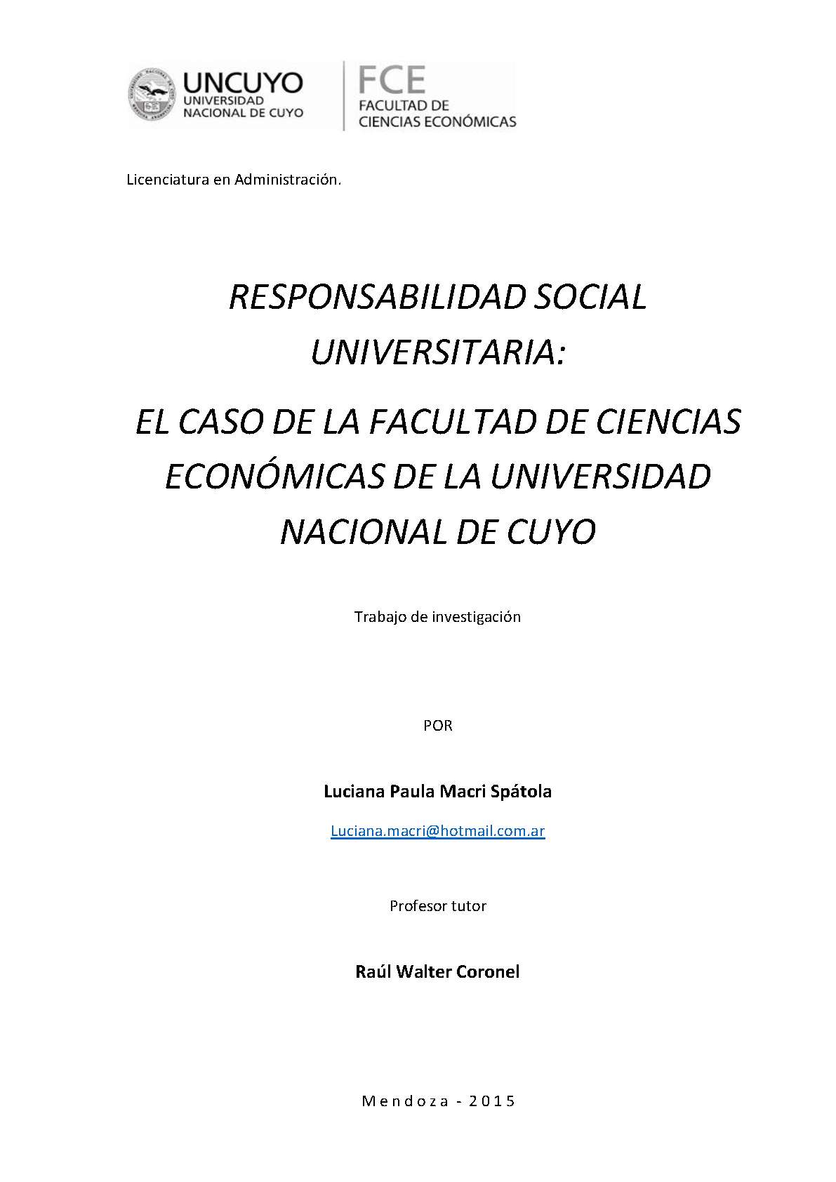 Macri Spátola, Luciana Paula. (2015). Responsabilidad social universitaria: el caso de la Facultad de Ciencias Económicas de la Universidad Nacional de Cuyo (Trabajo final de grado). Mendoza, Universidad Nacional de Cuyo. Facultad de Ciencias Económicas.