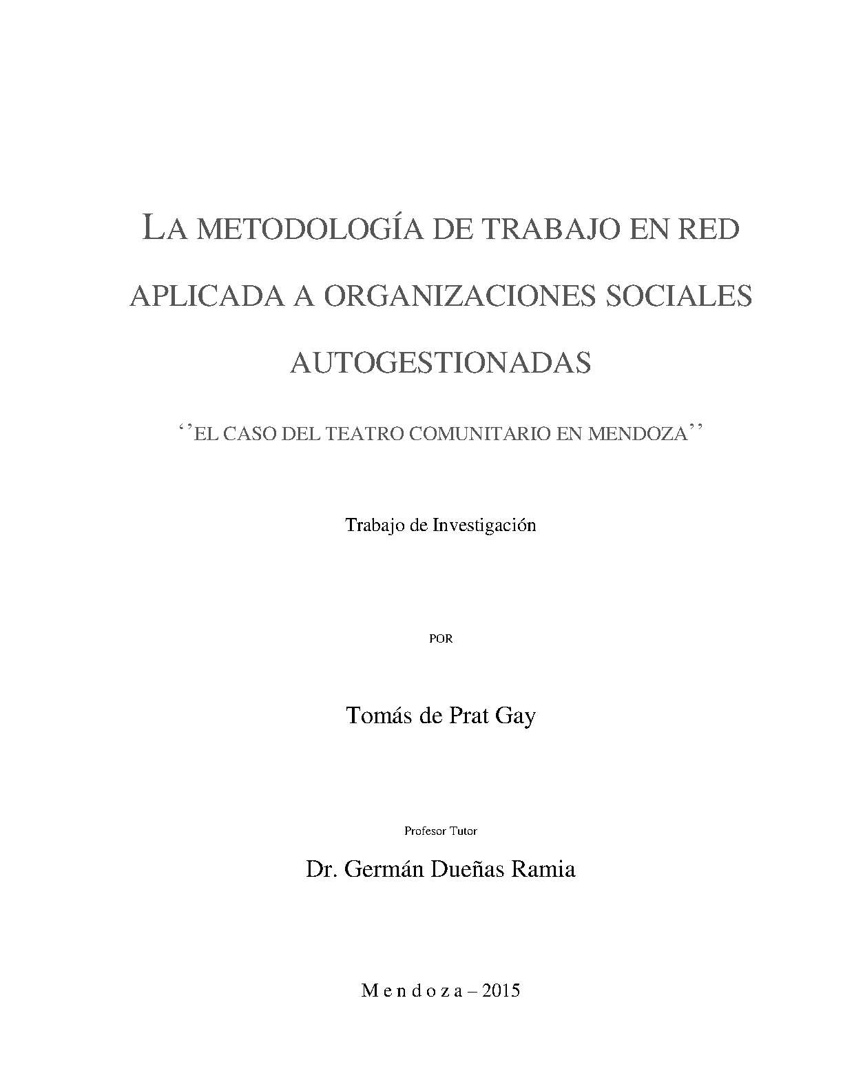 La metodología de trabajo en red aplicada a organizaciones sociales autogestionadas