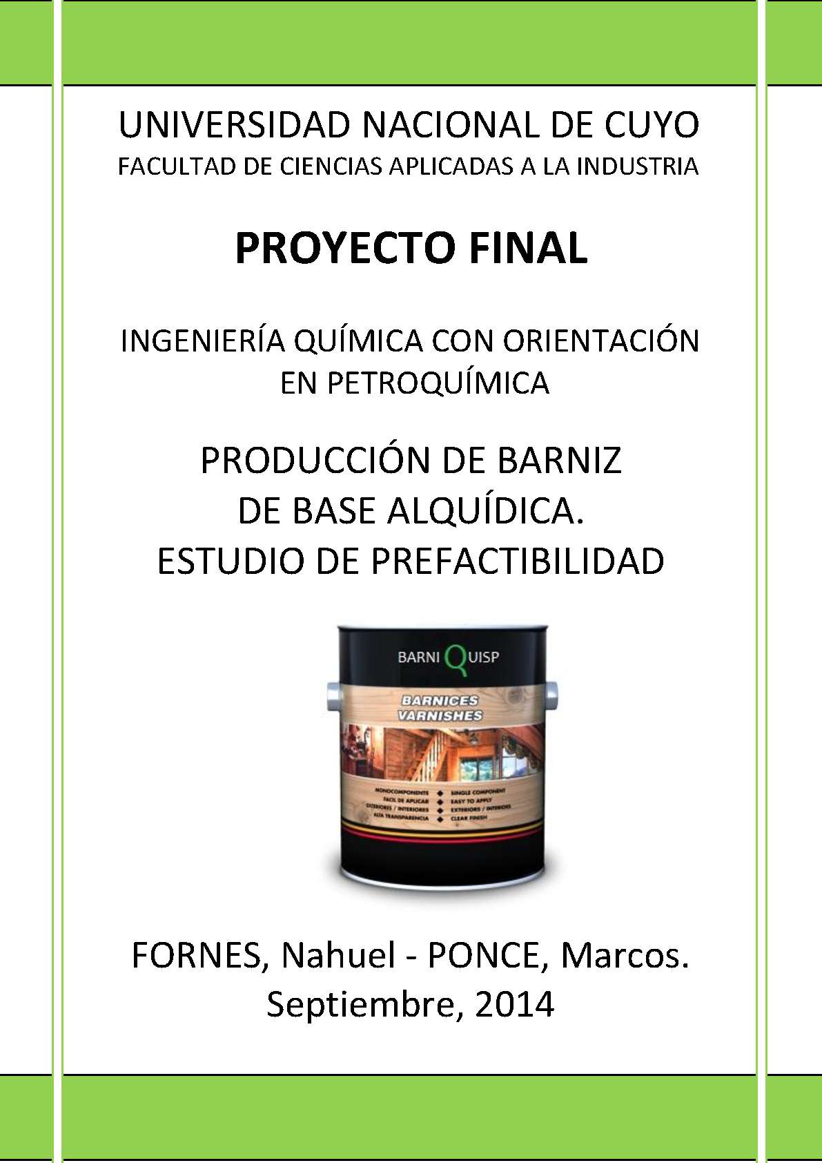 This paper contains the technical analysis and economic evaluation of the production of varnish at industrial level.