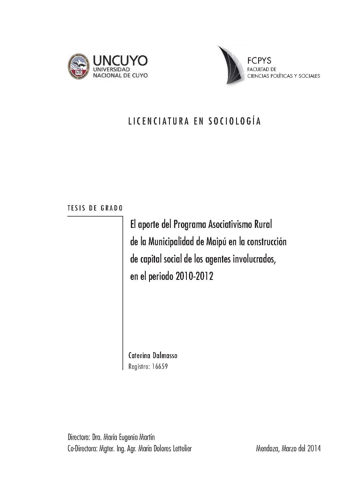 El aporte del Programa Asociativismo Rural de la Municipalidad de Maipú en la construcción de capital social de los agentes involucrados, en el periodo 2010-2012