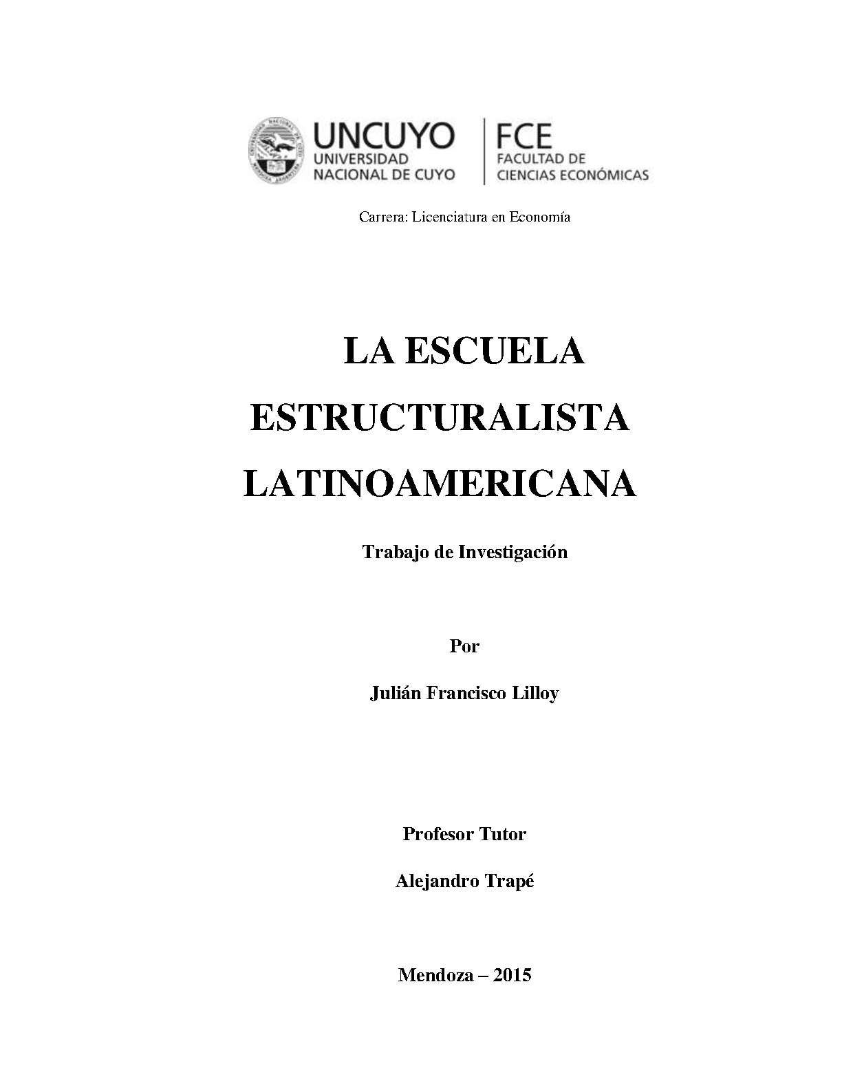 Lilloy, Julián Francisco. (2015). La escuela estructuralista latinoamericana: (Trabajo final de grado). Mendoza, Universidad Nacional de Cuyo. Facultad de Ciencias Económicas.