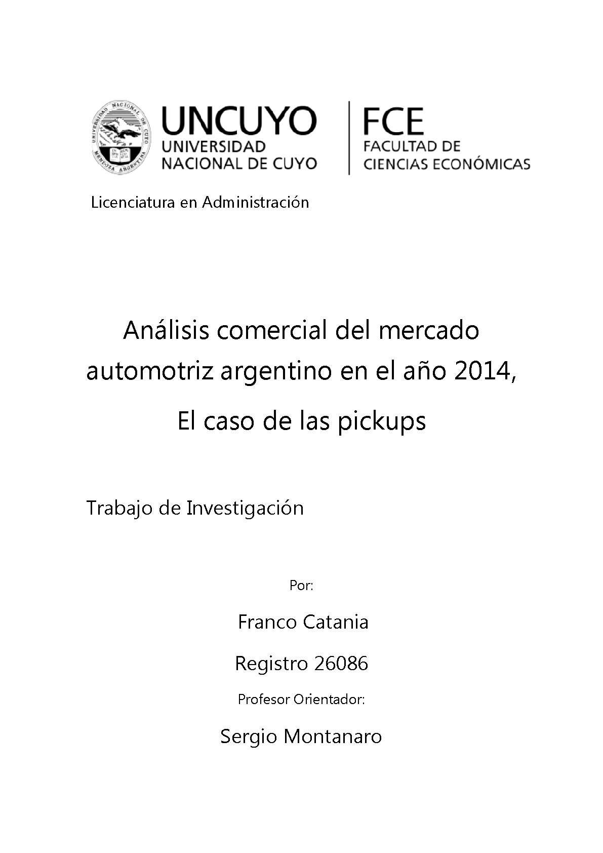 Catania, Franco. (2015). Análisis comercial del mercado automotriz argentino en el año 2014: el caso de las pickups (Trabajo final de grado). Mendoza, Universidad Nacional de Cuyo. Facultad de Ciencias Económicas.