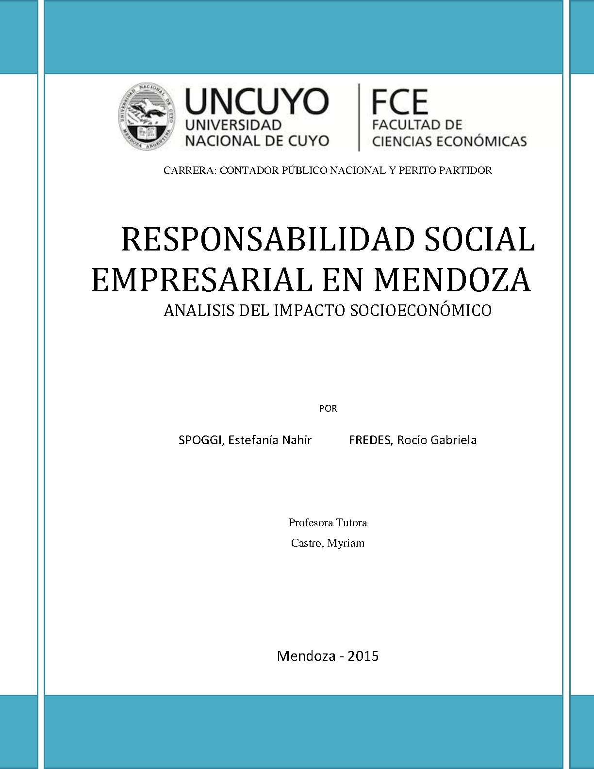 Spoggi, Estefanía Nahir; Fredes, Rocío Gabriela. (2015). Responsabilidad social empresarial en Mendoza: análisis del impacto socioeconómico (Trabajo final de grado). Mendoza, Universidad Nacional de Cuyo. Facultad de Ciencias Económicas.