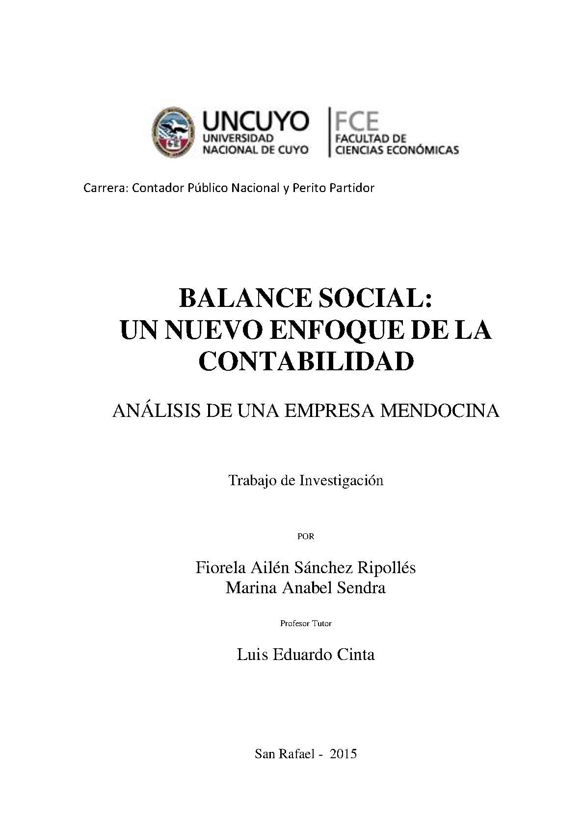Sendra, Marina Anabel; Sánchez Ripollés, Fiorela Ailén. (2014). Balance social: un nuevo enfoque de la contabilidad : análisis de una empresa mendocina (Trabajo final de grado). Mendoza, Universidad Nacional de Cuyo. Facultad de Ciencias Económicas. Delegación San Rafael.