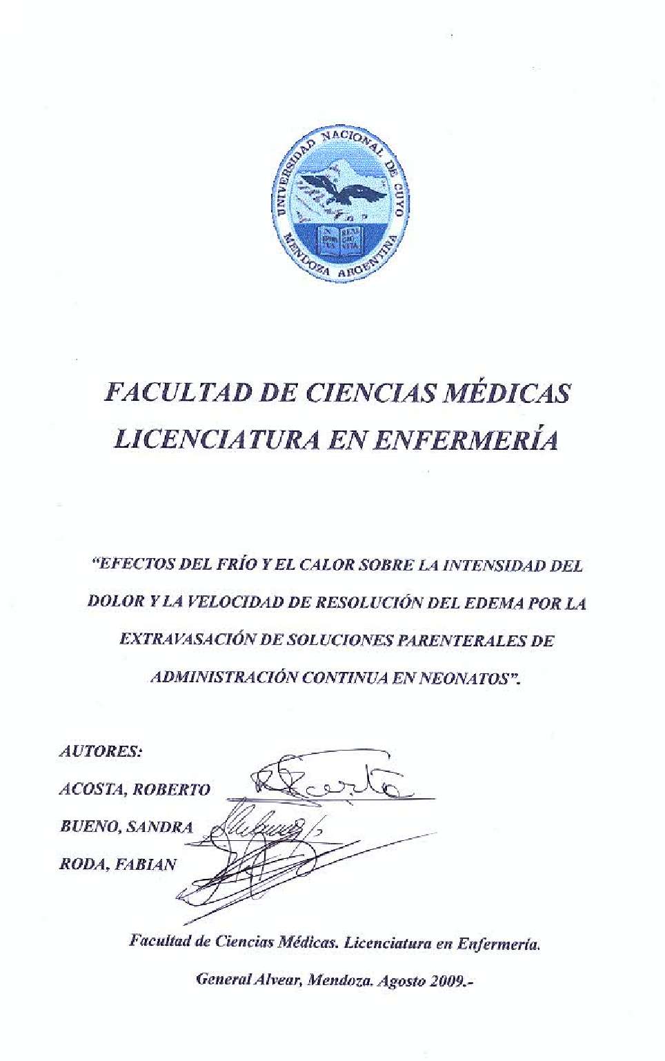 Universidad Nacional de Cuyo. Facultad de Ciencias Médicas. Escuela de Enfermería.