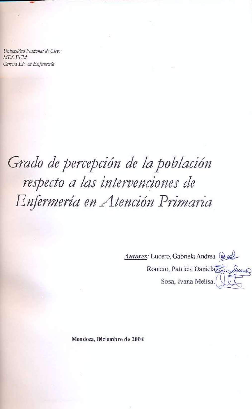 Universidad Nacional de Cuyo. Facultad de Ciencias Médicas. Escuela de Enfermería.