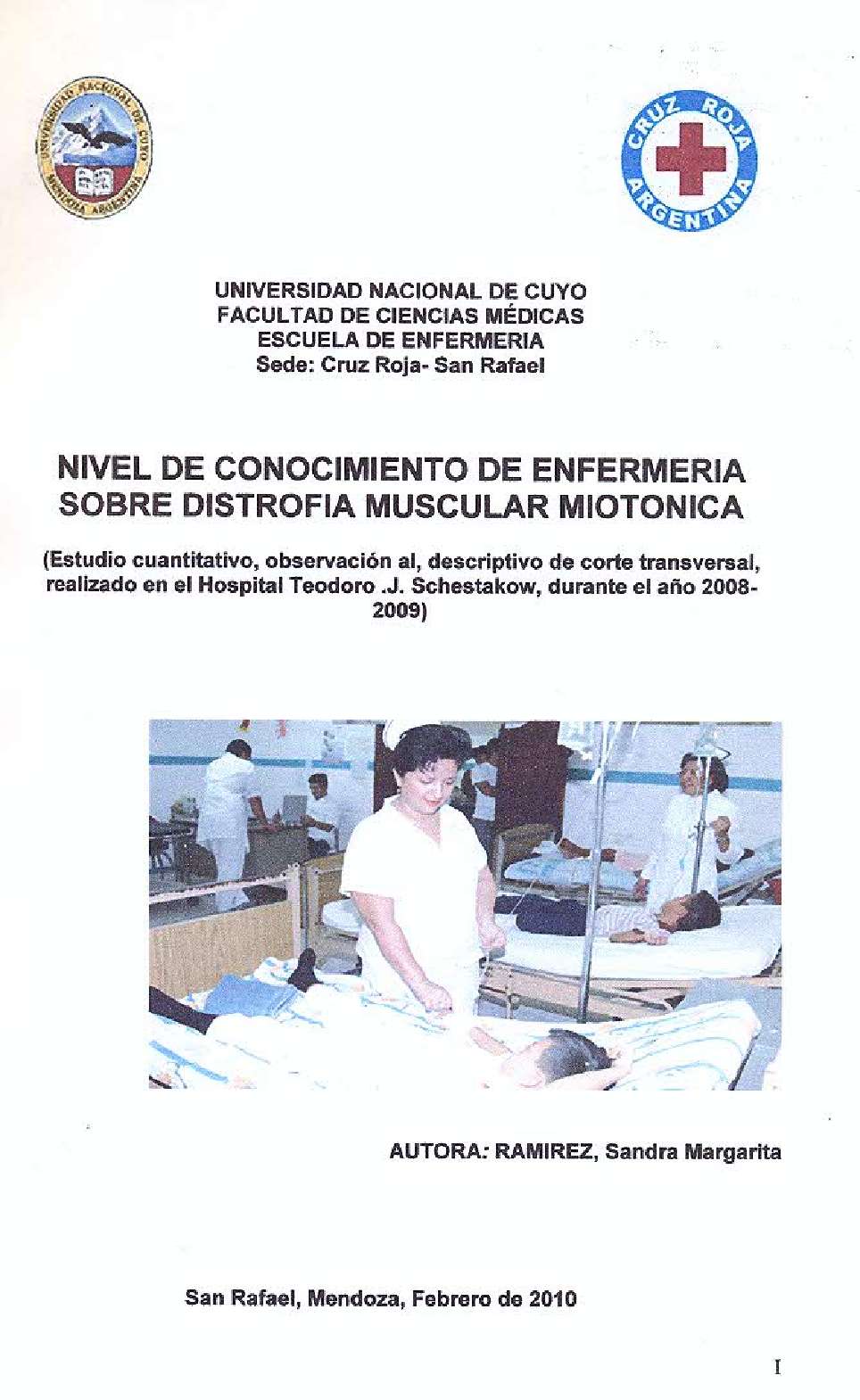 HOSPITAL TEODORO J. SCHESTAKOW (SAN RAFAEL, MENDOZA, ARGENTINA) - DISTROFIAS MUSCULARES - DISTROFIA MIOTÓNICA - PERSONAL DE ENFERMERÍA - CONOCIMIENTOS, ACTITUDES Y PRÁCTICA EN SALUD