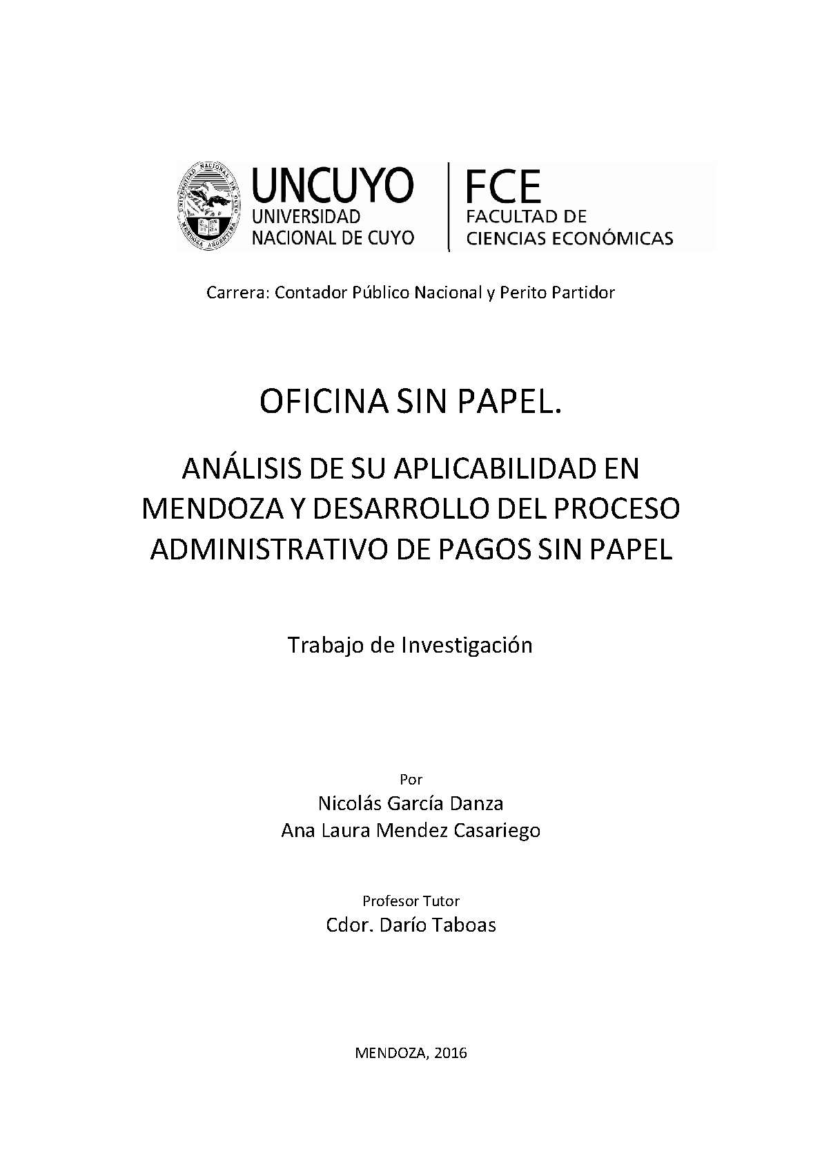 análisis de su aplicabilidad en Mendoza y desarrollo del proceso administrativo de pagos sin papel.