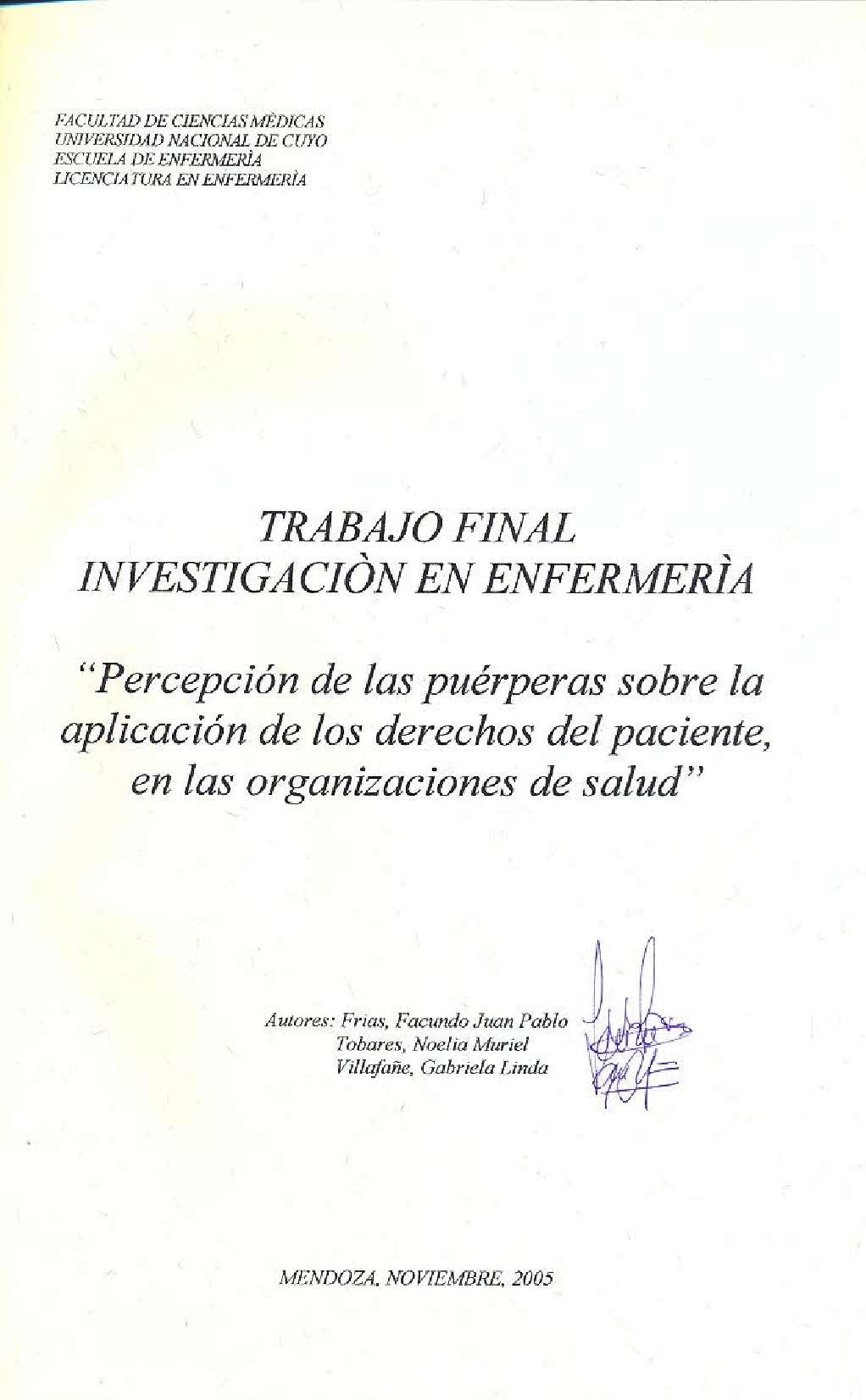 Percepción de las puérperas sobre la aplicación de los derechos del paciente en las organizaciones de salud