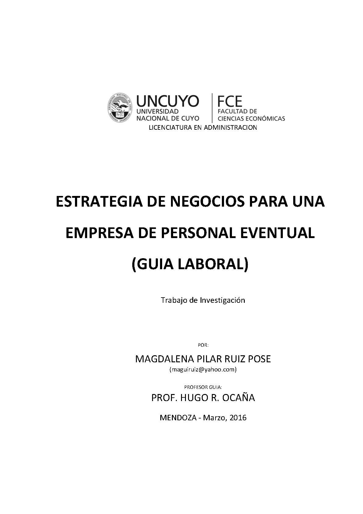 Ruiz Pose, Magdalena Pilar. (2016). Estrategia de negocios para una empresa de personal eventual: (guía laboral) (Trabajo final de grado). Mendoza, Universidad Nacional de Cuyo. Facultad de Ciencias Económicas.