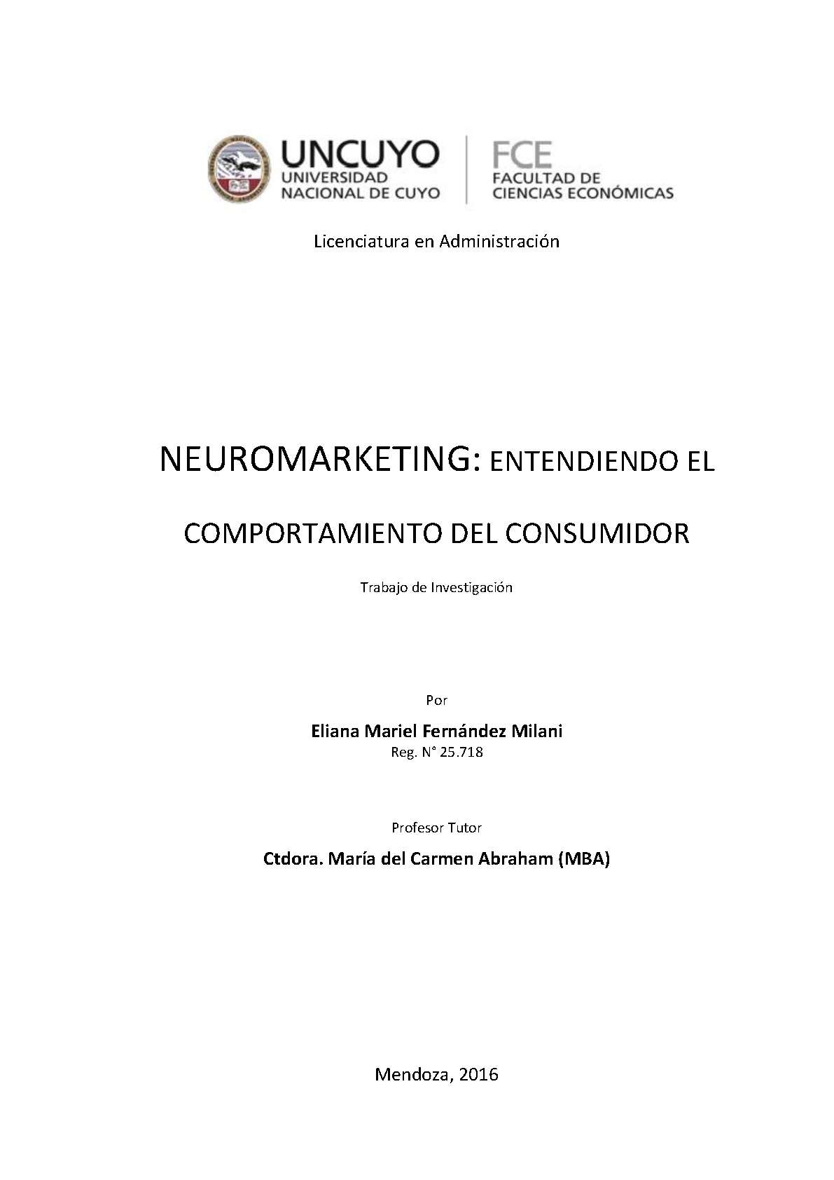 Fernández Milani Eliana Mariel . (2016). Neuromarketing: entendiendo el comportamiento del consumidor (Trabajo final de grado). Mendoza, Universidad Nacional de Cuyo. Facultad de Ciencias Económicas.